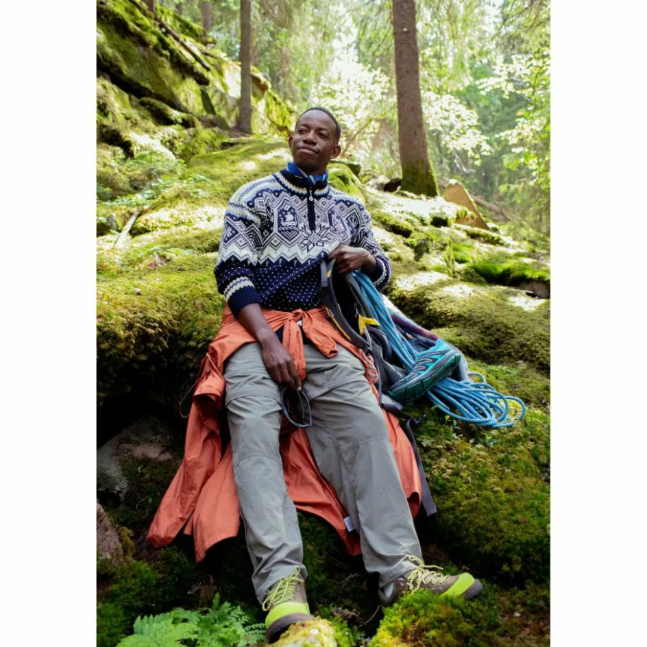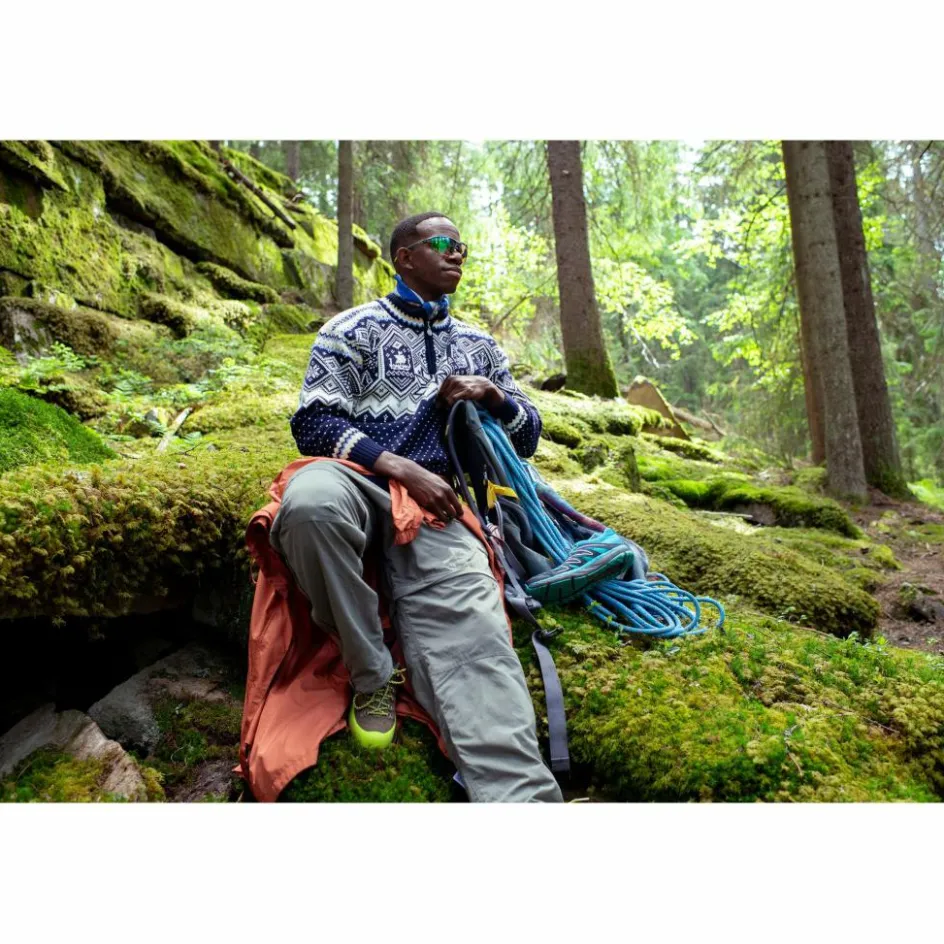 Der viertellange Front-Reißverschluss kann bei Bedarf zur Belüftung eingesetzt werden. Optimal, wenn du beim Skifahren, Schneeschuhlaufen oder im winterlichen Alltag ins Schwitzen geraten bist! Das wirklich atemberaubende Design vereint Stil und Tradition. In der Mitte befindet sich die achtblättrige Selbu-Rose, die von traditionellen Mustern der Stadt Trondheim umgeben wird. Das hat seinen Grund: Denn ganz nebenbei handelt es sich beim Pullover auch noch um den offiziellen Sweater für die Ski Championships 2025 in der norwegischen Stadt.