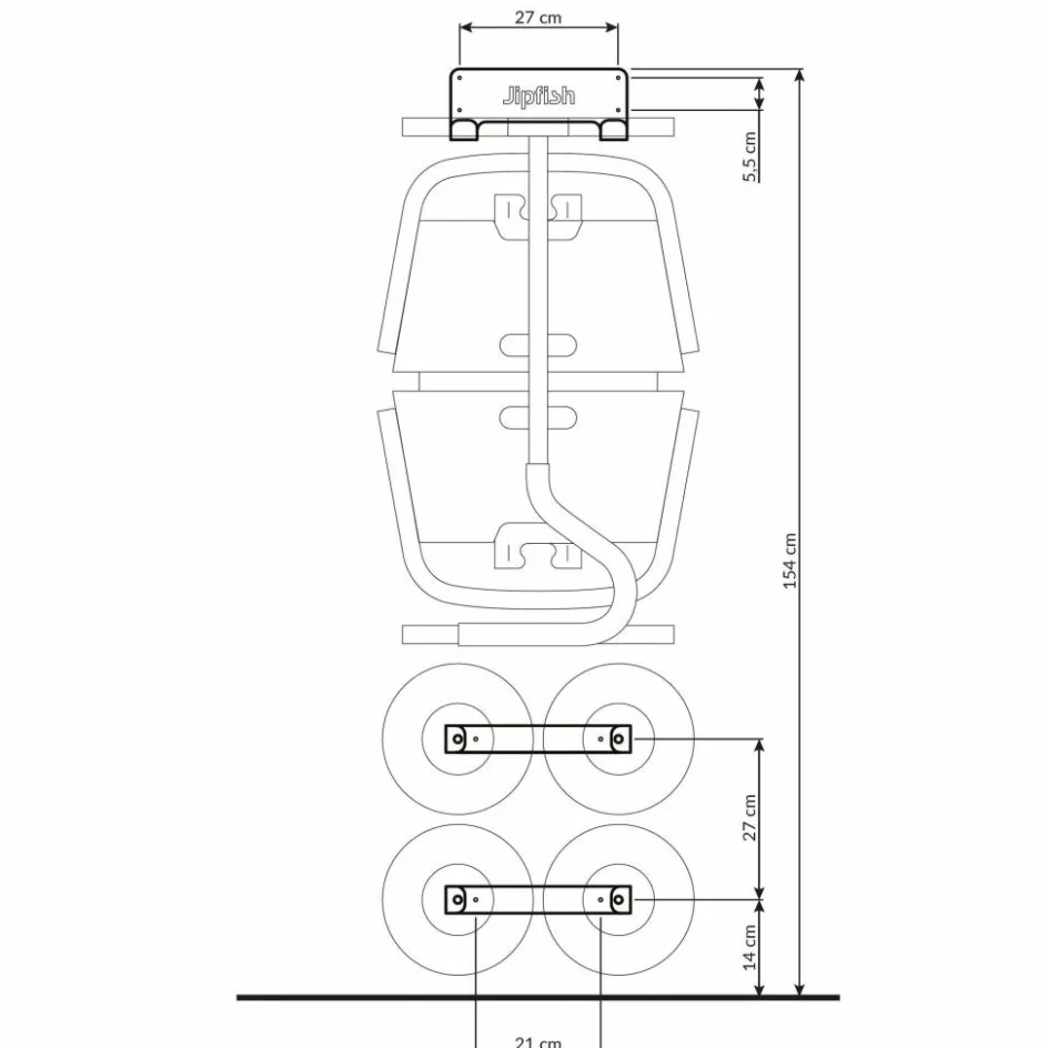 Mithilfe des Wandhakens kannst du deinen zusammengeklappten Jipfish sowie die Reifen platzsparend an der Wand befestigen. So ist der Bollerwagen griffbereit, wenn du ihn brauchst.