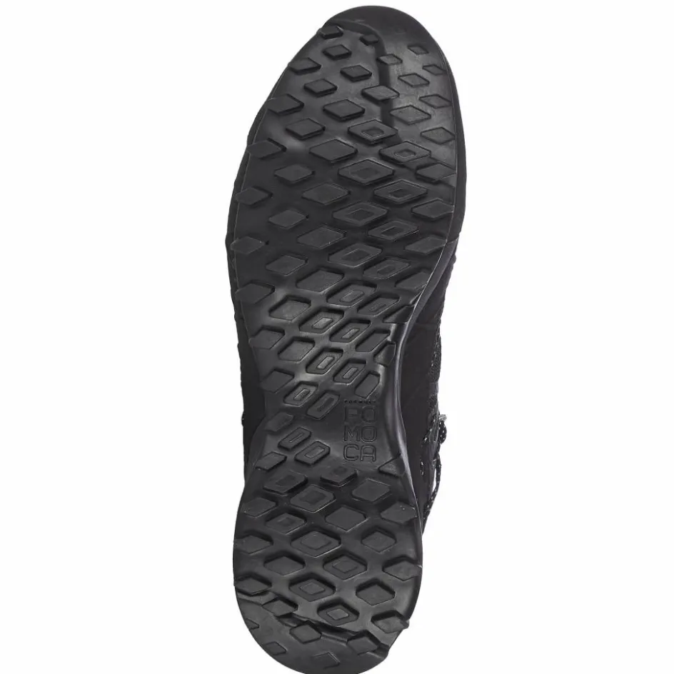 Außerdem wurde der halbhohe Zustiegsschuh mit einem umlaufenden Geröllschutzrand aus TPU versehen, der ebenfalls effektiven Schutz bietet. Die kräftige EVA-Zwischensohle wirkt stoßabsorbierend und dadurch frühen Ermüdungserscheinungen vor, während die griffige Pomoca Gummi-Profilsohle auch auf losen oder rutschigen Untergründen für optimalen Halt sorgt.