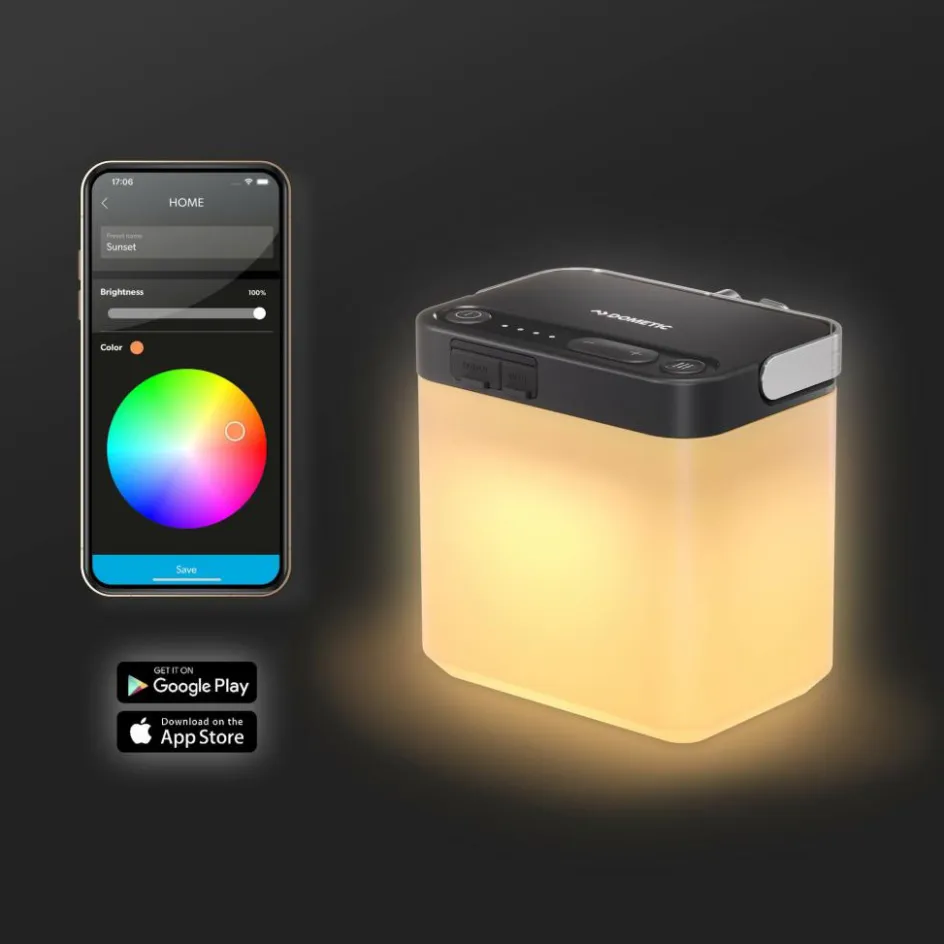 Die Dometic GO Area Camp Light ist eine multifunktionale Außenbeleuchtung. Sie kann als Taschenlampe, Flächenleuchte oder Laterne verwendet werden und bietet acht verschiedene Farben sowie vier Helligkeitsstufen für ein individuell angepasstes Outdoor-Erlebnis. Die 400-Lumen-Lampe ist wasserfest, langlebig und mit einem Akku ausgestattet, der auf der höchsten Stufe bis zu acht Stunden hält. Zusätzlich dient sie als Powerbank, damit du unterwegs immer verbunden bleibst.