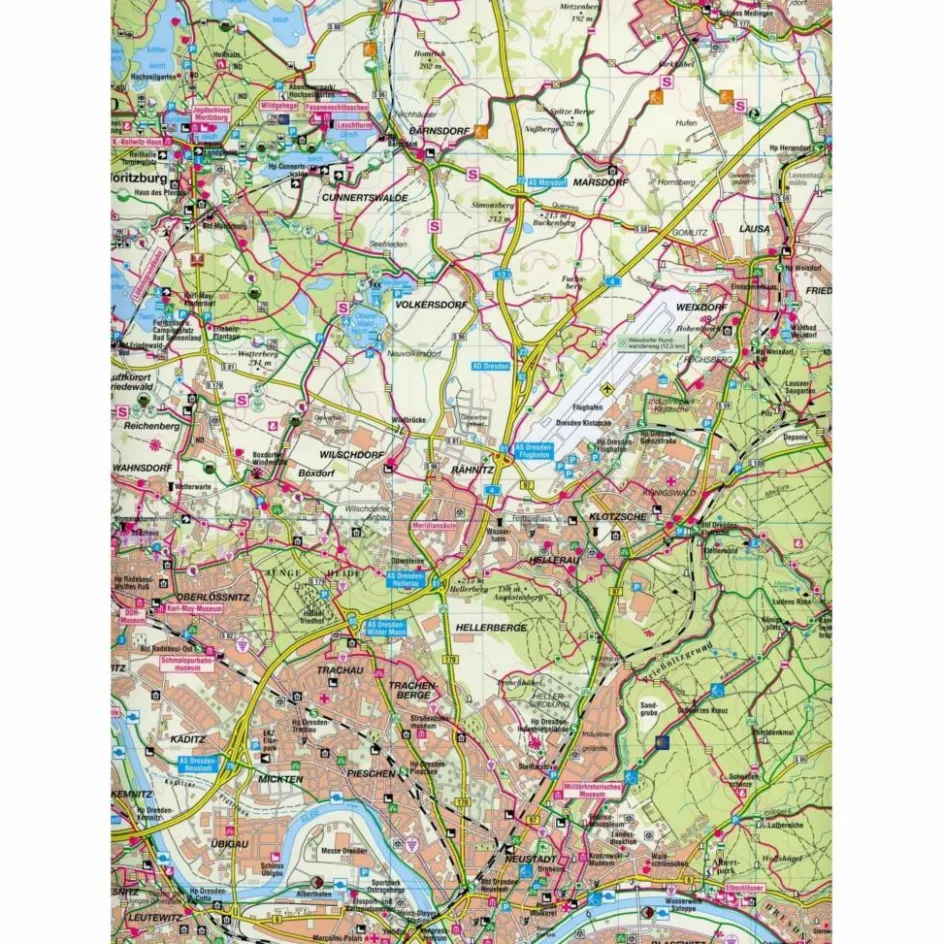 Umfasst das Ausflugsgebiet rund um Dresden – Moritzburg, Dresdner Heide, Schönfelder Hochland, Radeberg, Pirna, Stadt Wehlen, Tharandter Wald, Rabenauer Grund, Triebischtal, Meißen, Diesbar-Seußlitz sowie Radebeul.Die Karte beinhaltet alle markierten Wanderwege, Pilgerwege als auch Radwege mit deren Kennzeichnung.Durch die Darstellung der u.a. naturkundlichen, geologischen und historischen Informationen wird der Kartennutzer auf die großen und kleinen Sehenswürdigkeiten rechts und links des Weges aufmerksam gemacht.Auf der Kartenrückseite finden sich Text und Bild zu dem dargestellten Gebiet sowie Wander und Radroutenvorschläge.