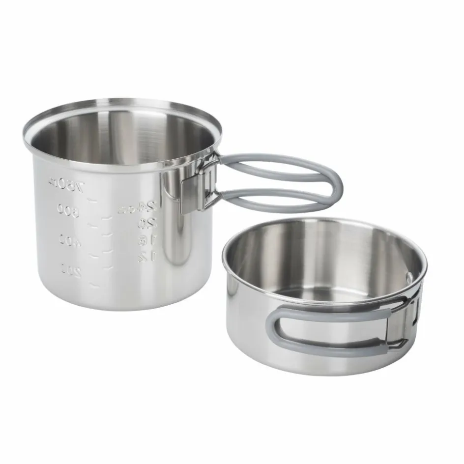 Die Kombination aus Topf und Deckel eignet sich optimal für eine Person. Sie ist platzsparend im Gepäck, aus robustem Edelstahl gefertigt und energiesparend zu beheizen.