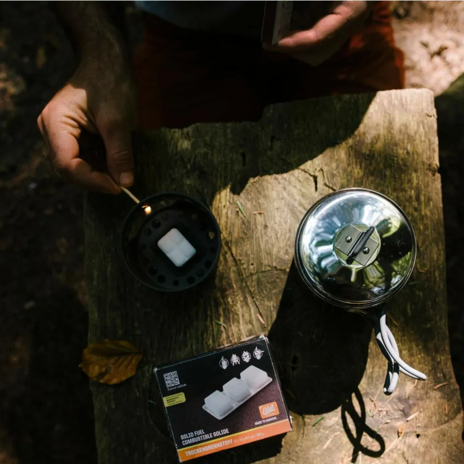 Erich Schumms Brennstoff In Tablettenform. Für die gleichnamigen Taschenkocher, als Feuerstarter oder zum Vorwärmen von Kochern. Sauber, sicher, verbrennt fast rückstandsfrei.