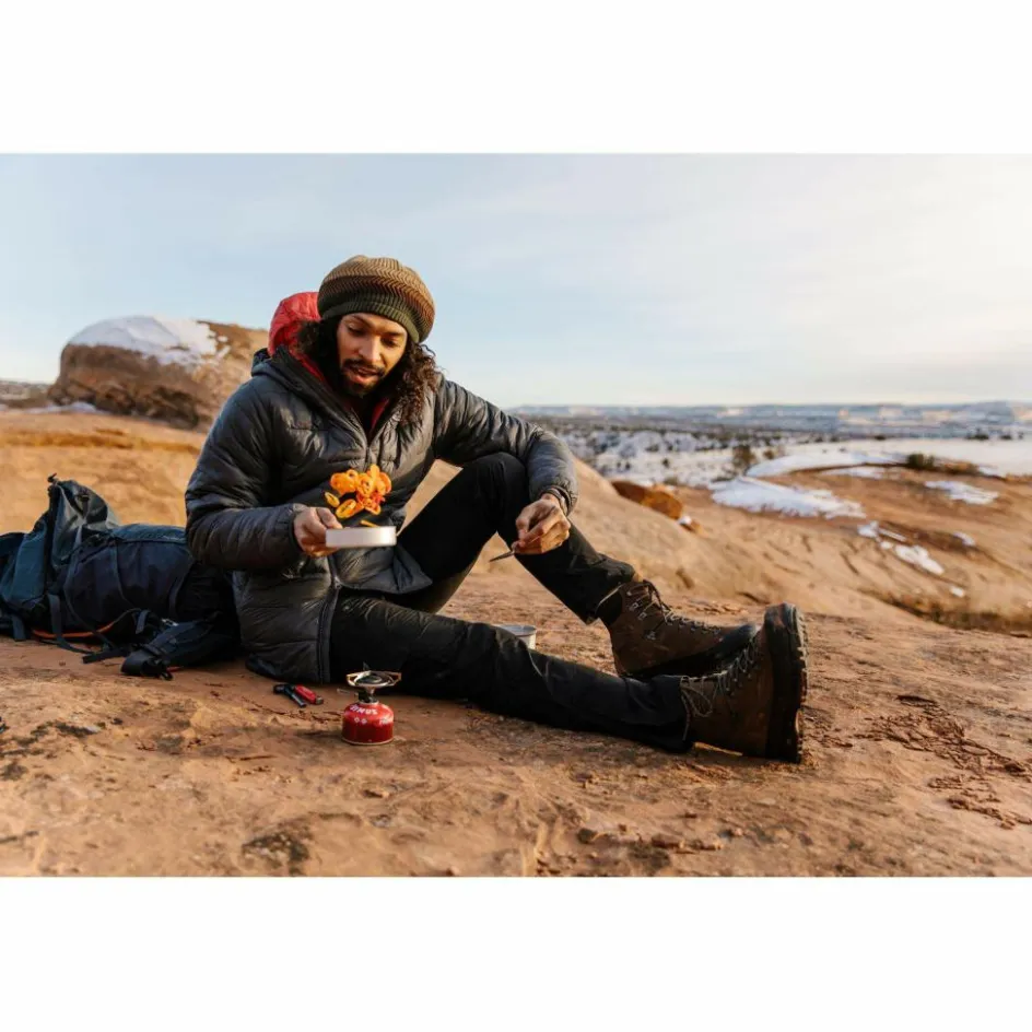 Der Essential Trail Stove besitzt eine flache Bauweise und ist hochwertig verarbeitet. Der Gaskocher ist simpel in der Bedienung und robust gebaut. So kommt er ohne klappbare Topfhalter aus, weshalb du ihn nach dem Aufschrauben direkt entzünden und mit dem Kochen beginnen kannst.
