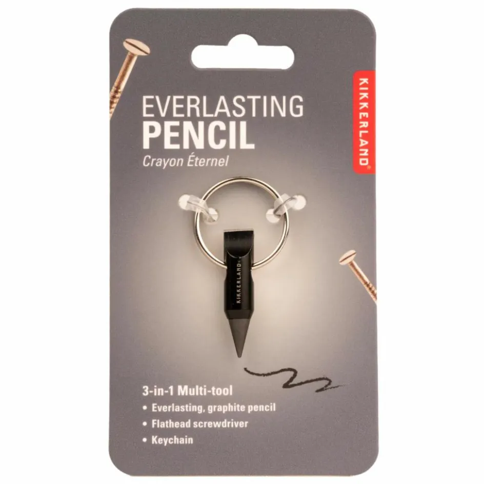 Dieses Schlüsselanhänger-Werkzeug ist winzig, aber mächtig! Es enthält einen unverwüstlichen Bleistift aus Graphit, damit du immer etwas zum Schreiben hast, und einen handlichen und vielseitigen Schlitzschraubendreher.