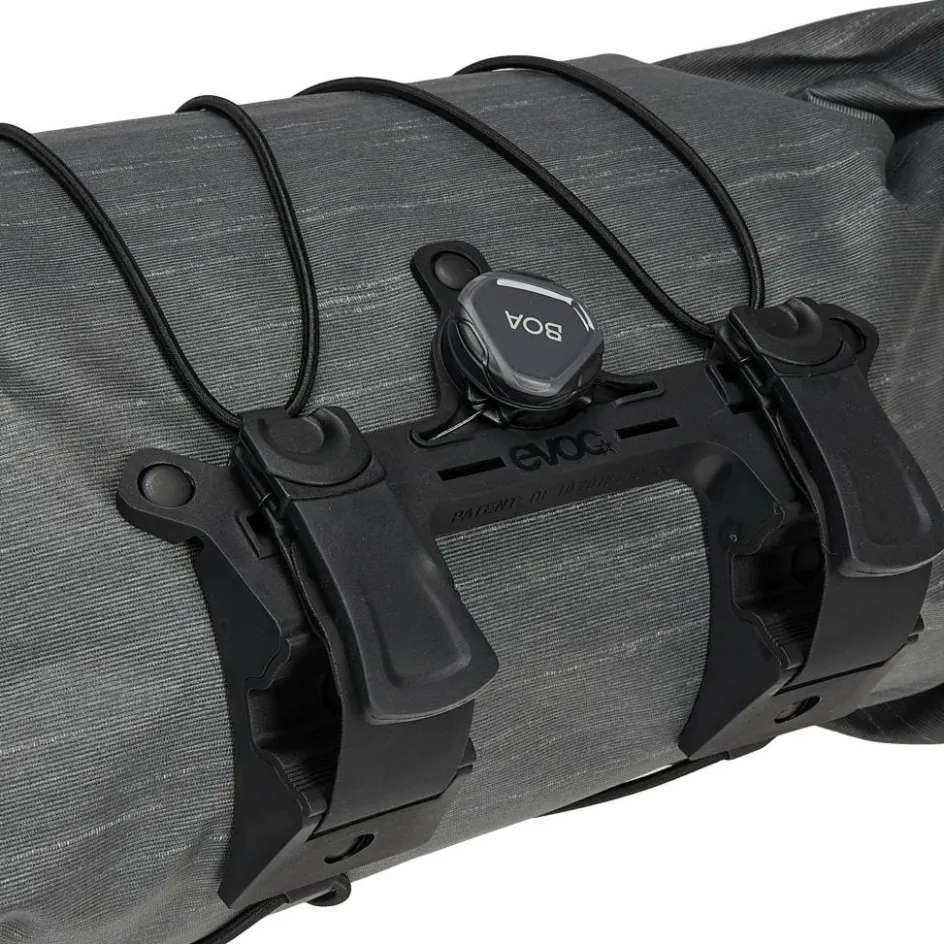 Dank des patentierten Fixierungssystems mit Boa Fit System ist die wasserdichte Lenkertasche kinderleicht montiert. Die beiden Laschen der Tasche werden mit einem Boa-Drehrad gleichzeitig fest angezogen. Die gummierten Teile, die an deiner Lenkstange aufliegen, sind so konstruiert, dass sie Platz lassen für Brems- oder Schaltzüge; so kommt die Tasche deinem Lenker- und Züge-Setup nicht ins Gehege.
