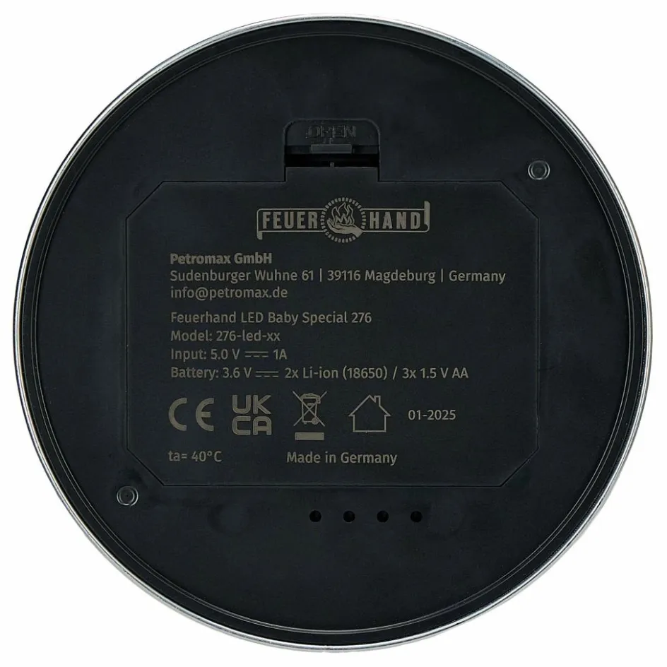 Die Baby Special 276 LED kann wahlweise mit drei AA-Akkus oder zwei 18650-Akkus betrieben werden. Mit AA-Akkus erreichst du eine Leuchtdauer von 1,5 Stunden im hellsten Modus oder 156 Stunden im niedrigsten Modus. Die beste Laufzeit erzielst du mit zwei 18650-Akkus: Bei voller Lichtleistung beträgt die Laufzeit 14,5 Stunden, im gedimmten Modus sogar 432 Stunden (das entspricht 18 Tage). Verwendest du 18650-Akkus, kannst du diese über den eingebauten USB-C-Port direkt in der Lampe wieder aufladen. Die Ladezeit beträgt etwa 8,5 bis 10 Stunden.