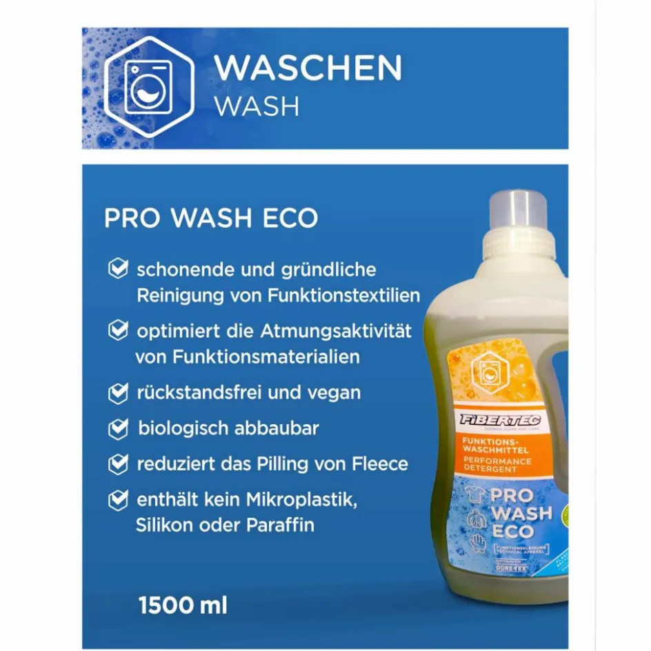 Biologisch abbaubares Spezialwaschmittel in der großen Flasche, das du für alle Arten von Funktionsbekleidung einsetzen kannst. Es wäscht sich rückstandslos aus Textilien und ist biologisch abbaubar.