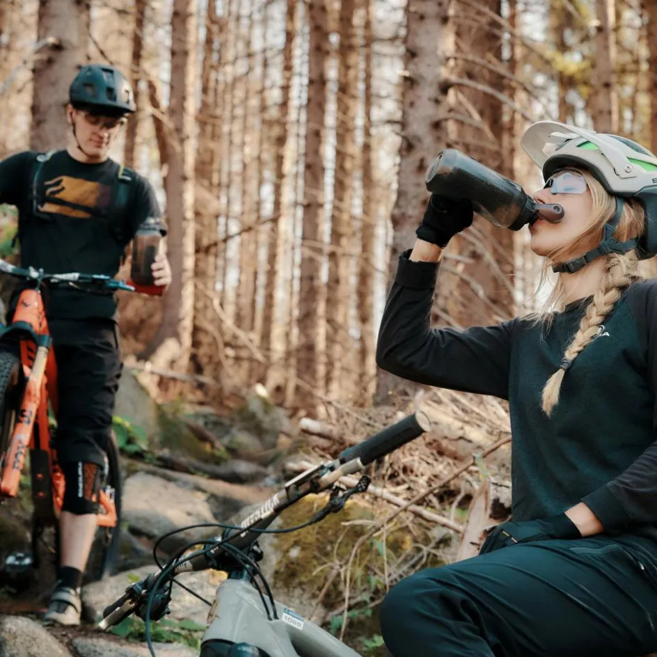 Das Wörtchen „compact“ im Namen macht es bereits deutlich: Die Flasche ist besonders kompakt und baut mit 20,8 cm nicht höher als die Twist Bottle 590 von Fidlock. Damit brauchst du in deinem Fahrradrahmen auch nicht mehr Platz für diese Flasche – hast aber für deinen Durst mehr Flüssigkeit an Bord. Die Twist Bottle 750 Compact lässt sich sehr gut zusammendrücken, die tropfsichere Membran hat eine hohe Durchflussrate. Die Schmutzkappe kannst du auch weglassen; diese ist abnehmbar.