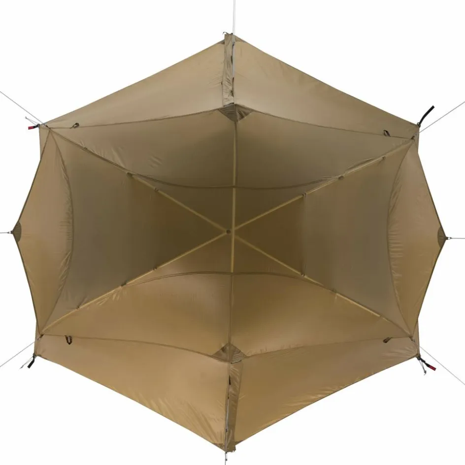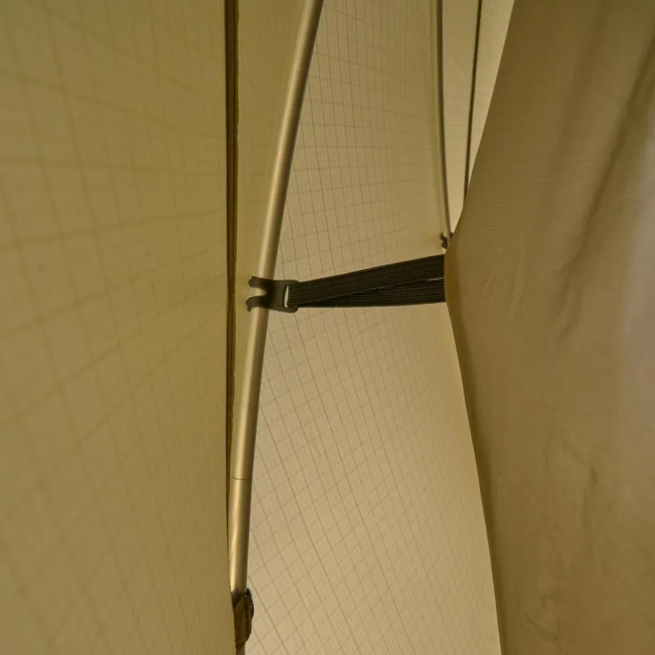 Das Kuppelzelt punktet mit einer hervorragenden Belüftung in der warmen Jahreszeit. Das Außenzelt besitzt weit nach oben gezogene Säume, um einen konstanten Luftstrom zu gewährleisten. Im Kopf- und Fußbereich befinden sich zudem große, abspannbare Lüfter. In Kombination mit dem luftigen Innenzelt ist dadurch für eine gute Luftzirkulation im Zelt gesorgt. Das Moskitonetz des Innenzelts besteht aus fein gesponnenem No-See-Um Mesh. Es hält selbst winzige Plagegeister wie Midges fern, erlaubt aber neben der Belüftung gleichzeitig eine gute Sicht aus dem Zelt heraus.