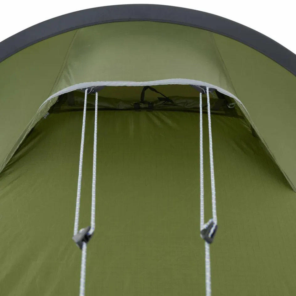Identisch hingegen ist die Belüftungsfunktion der Eingangstüren. Sie können in halb geöffneter Position fixiert werden und sorgen anschließend für maximale Belüftung im Zelt. Eine Auto-Stopp-Funktion verhindert dabei, dass sich der Reißverschluss weiter öffnen kann.
