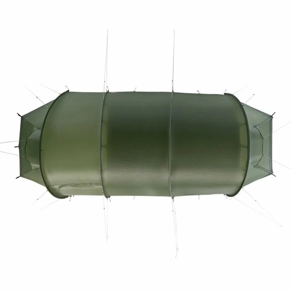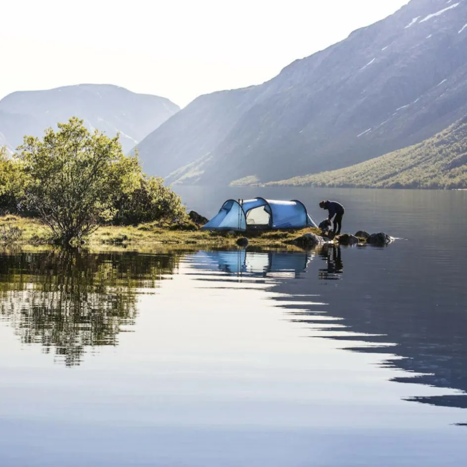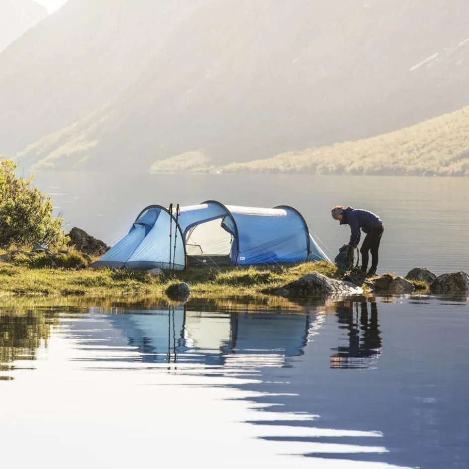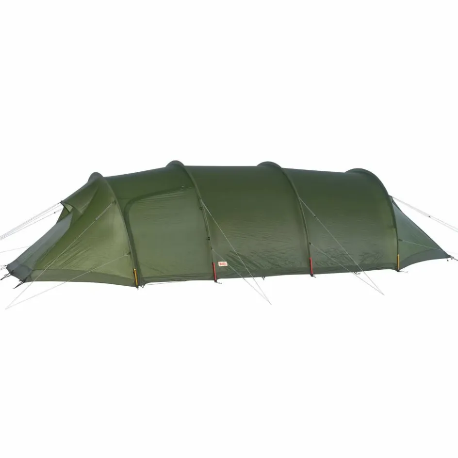 Langes Ganzjahreszelt für 3-4 Personen mit zwei Apsiden und großer Schlafkammer mit durchgehender Höhe. Ideal für aktive Familien oder als Winterzelt auf Skitour mit der Pulka.