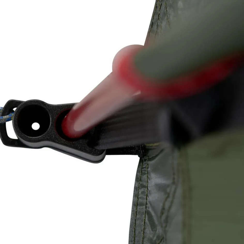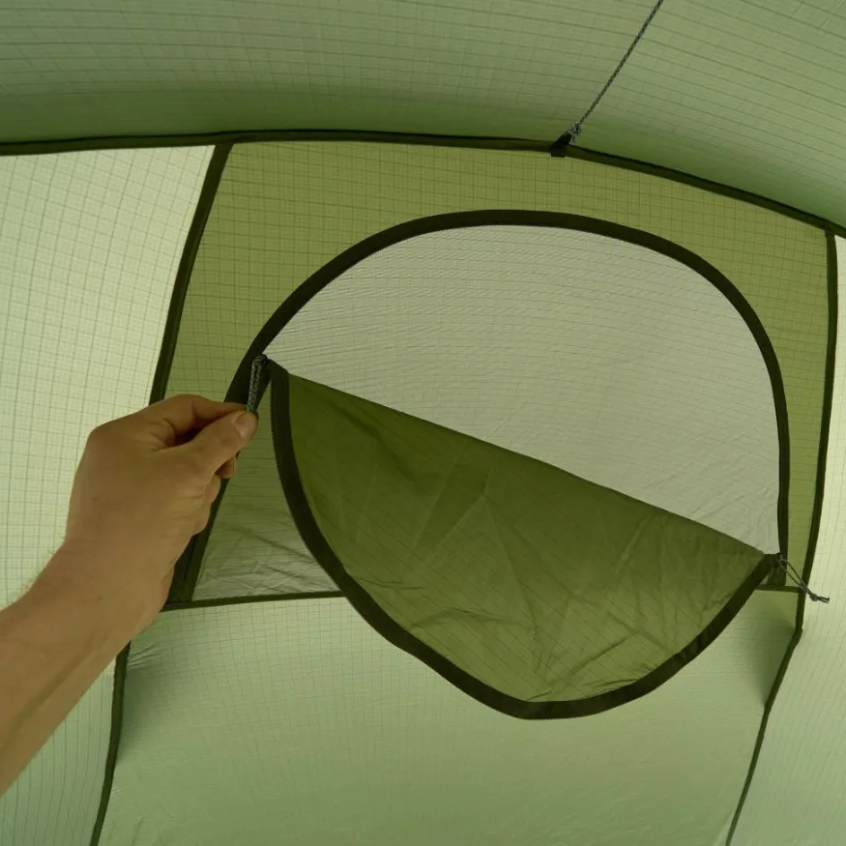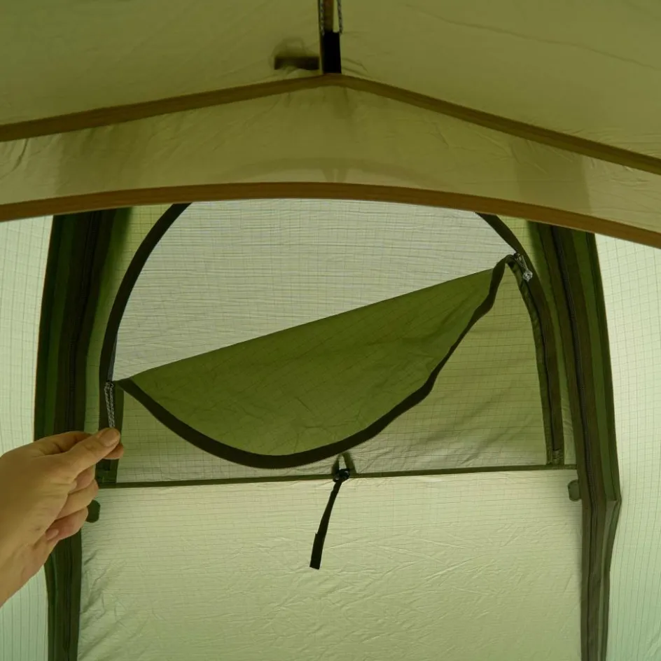 Die großen Lüfter sind hoch angebracht und besitzen ein feinmaschiges Moskitonetz, das selbst kleinste Insekten fernhält. Besonders in warmen Nächten wirst du dich aber über die zusätzliche Belüftungsfunktion der beiden Eingangstüren freuen. Sie können in halb geöffneter Position fixiert werden und sorgen dadurch für maximale Belüftung im Zelt. Eine Auto-Stopp-Funktion des Reißverschlusses verhindert dabei, dass er sich öffnen kann.