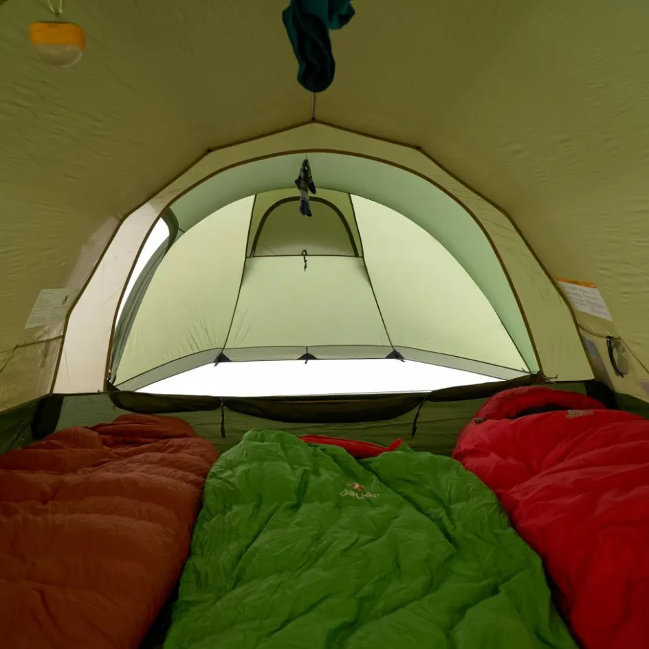 Farbcodierte Gestänge und Gestängekanäle erleichtern die Zuordnung beim Aufbau. Praktisch auch, dass das Innen- und Außenzelt tunneltypisch gleichzeitig aufgebaut werden. So bleibt das Innenzelt bei Regen trocken und die Aufbauzeit wird verkürzt. Breit bemessene Gestängetunnel und Aufnahmefüße erlauben dir, dass du bei starkem Sturm oder hohen Schneelasten einen zweiten Stangensatz (als Zubehör erhältlich) einsetzen kannst.