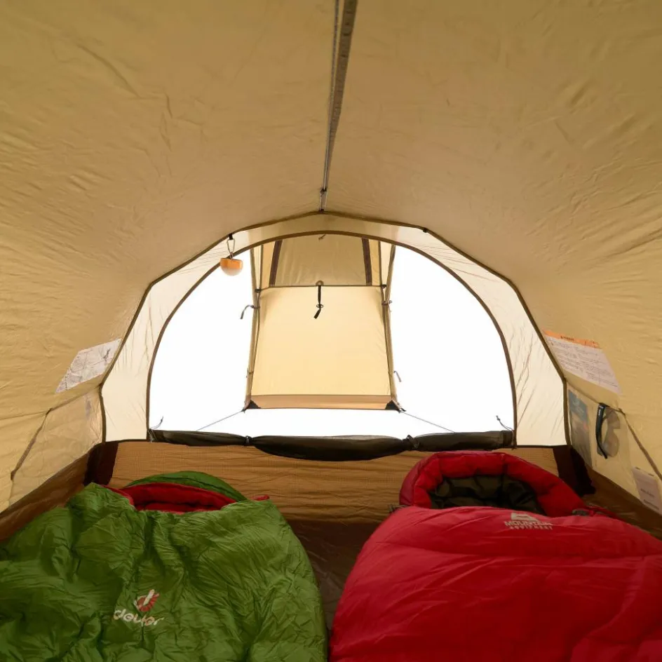 Um den Aufbau zu erleichtern, kann das Innen- und Außenzelt gleichzeitig aufgestellt werden. So bleibt das Innenzelt bei Regen trocken und die Aufbauzeit wird verkürzt. Beide Gestängebögen bestehen aus hochwertigem DAC Featherlite NSL Aluminium. Bei kritischer Witterung kannst du sie mit einem zweiten Stangensatz (als Zubehör erhältlich) ergänzen. So trotzt das Zelt auch starken Stürmen zuverlässig.