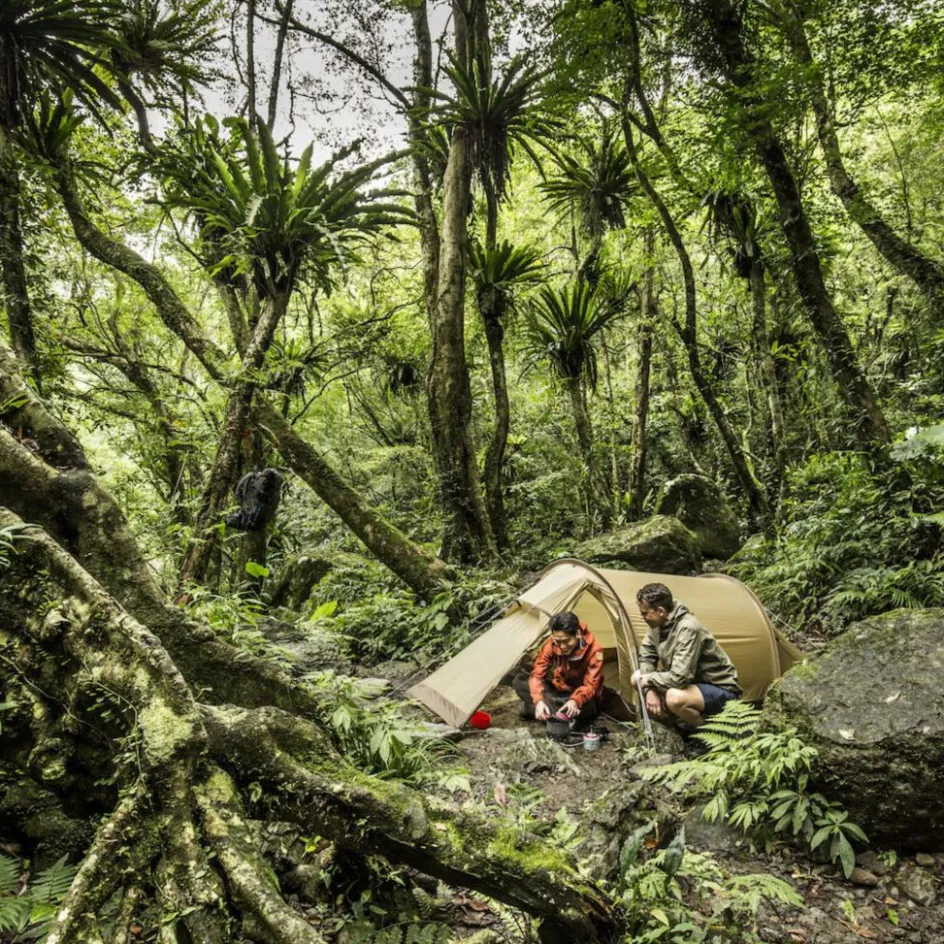 Komfortables Tunnelzelt mit Platz für zwei Personen. Aufgrund des geringen Gewichts und kleinen Packmaßes eignet es sich ideal für Trekkingtouren zu jeder Jahreszeit.