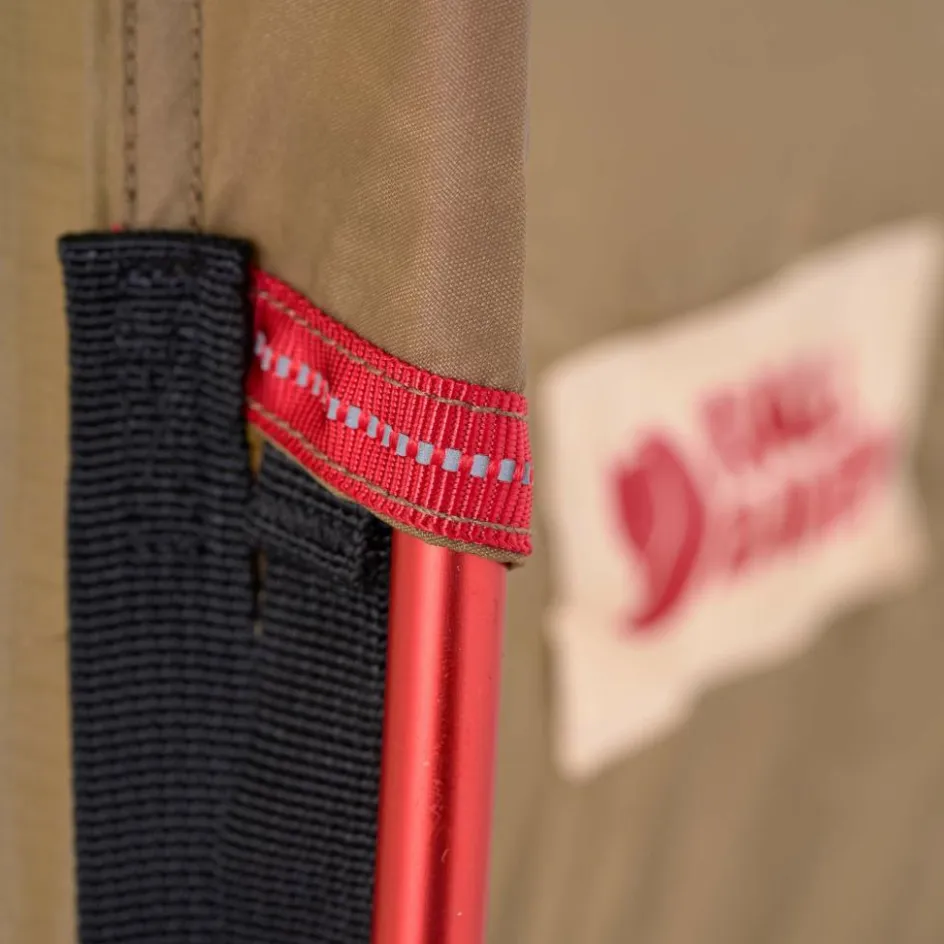 Besonders im Fjell können Sträucher dem Außenmaterial schnell zusetzen. Deshalb besteht das Außenmaterial aus zwei Gewebestärken. Das dunklere, bodennahe Material ist aus 40 <span style="text-align: left;" data-glossar-text="