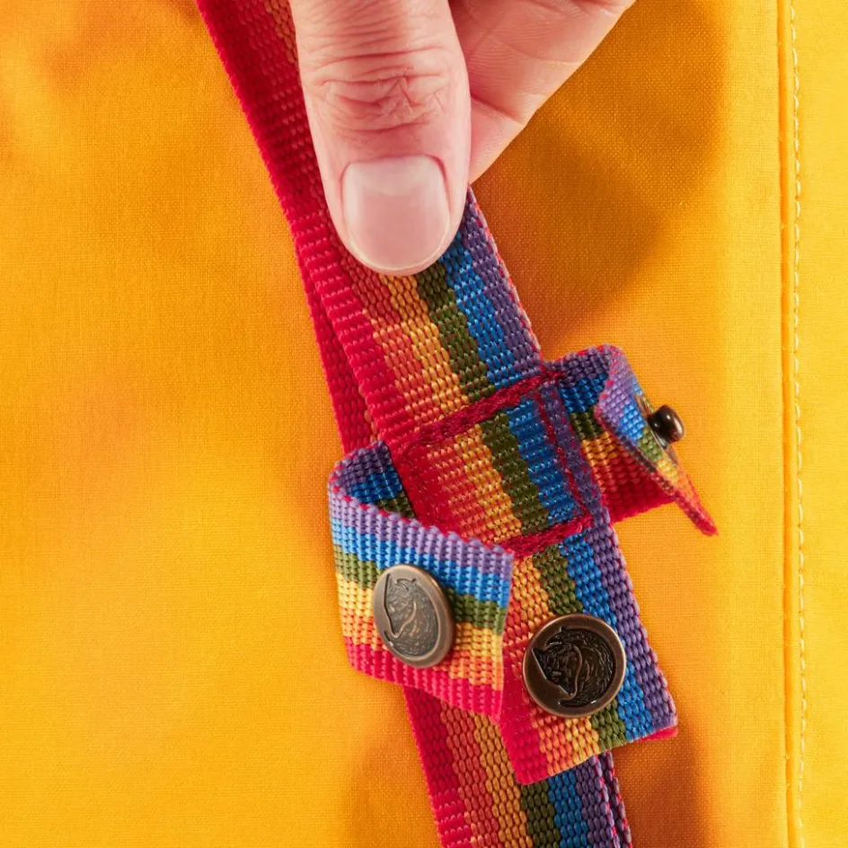 Im Kern ist der Kanken Rainbow Mini dem Original treu geblieben. Er besteht aus dem wasserabweisendem Vinylon F, dessen Wetterschutz ein ganzes Kanken-Leben lang anhält. Auch sonst ist die bunte Ikone ganz wie gewohnt ausgestattet. Bunt, eckig und robust.