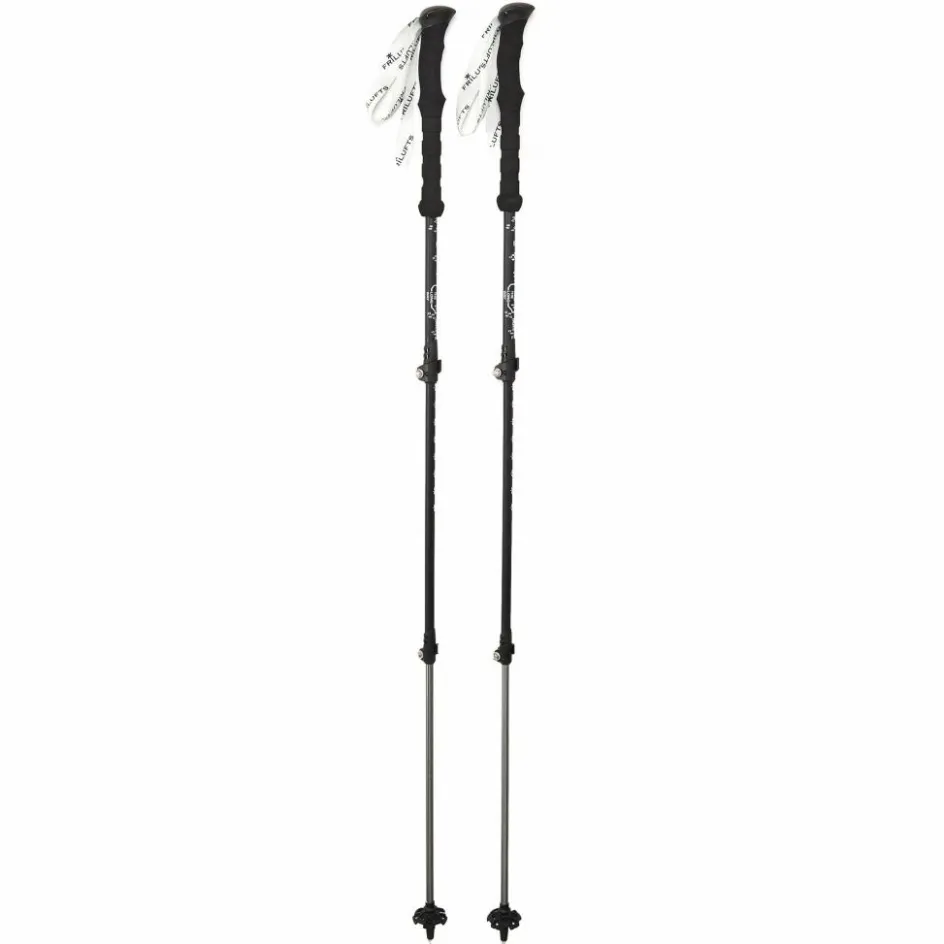 Die oberen beiden Stocksegmente bestehen aus leichtgewichtigem Carbon, das untere Segment aus robusterem Aluminium, um den Stock resistent bei Kontakt mit scharfen Kanten und Steinen zu machen.