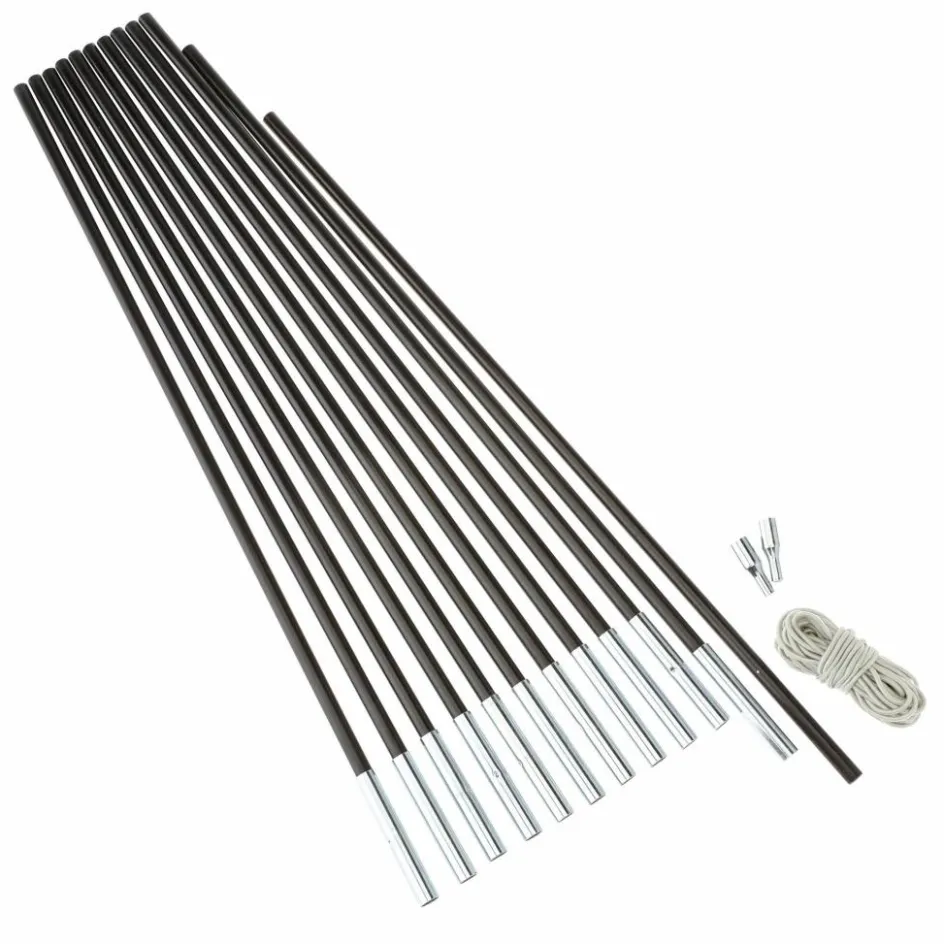 Als Ersatz von Zeltstangen mit 9,5 mm Durchmesser und maximal 6 Meter Länge.