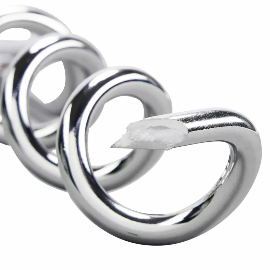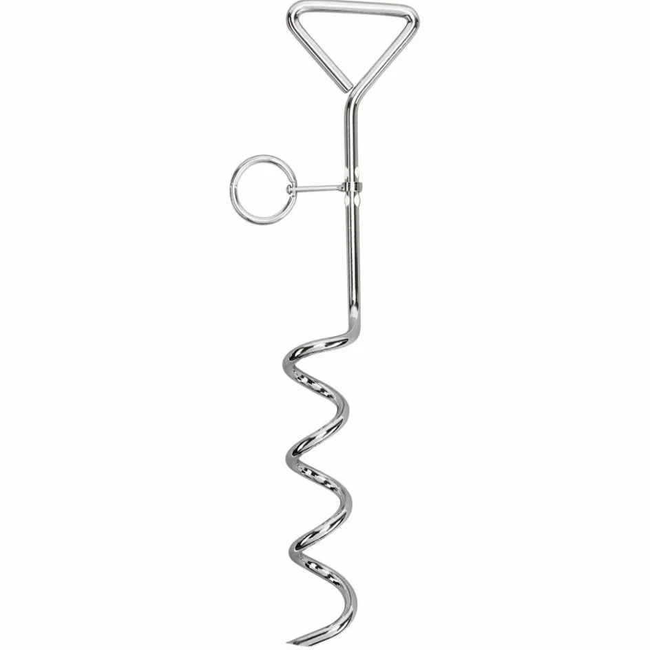 40 cm langer Stahlhering mit Schraubgewinde für mittelharte Böden. Zum leichteren Einschrauben in den Boden kann ein Stock durch das Öhr gesteckt werden.