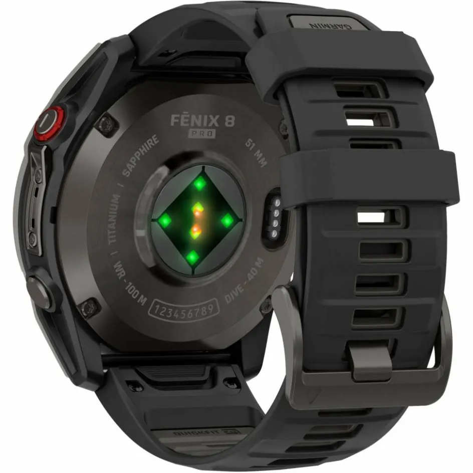 Das hochwertige Design der fēnix 8 macht alles mit. Es ist für das Tauchen geeignet, hat wasserdichte Tasten, einen Sensorschutz aus Metall und ein helles 1,4-Zoll AMOLED Touchdisplay mit kratzfestem Sapphire Glass und einer Titan-Lünette. Die Smartwatch wurde nach US-Militärstandards im Hinblick auf thermische Leistung, Stoßfestigkeit und Wasserdichtigkeit getestet.