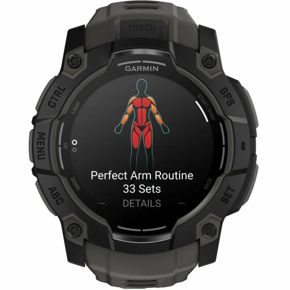 Amoled-Display: Die Instinct 3 Amoled 50mm hat ein brillantes 1,3-Zoll AMOLED-Display, um detaillierte Informationen auf einen Blick ablesen zu können. Das alles bei einer hervorragenden Akkulaufzeit von bis zu 24 Tagen im Smartwatch-Modus.