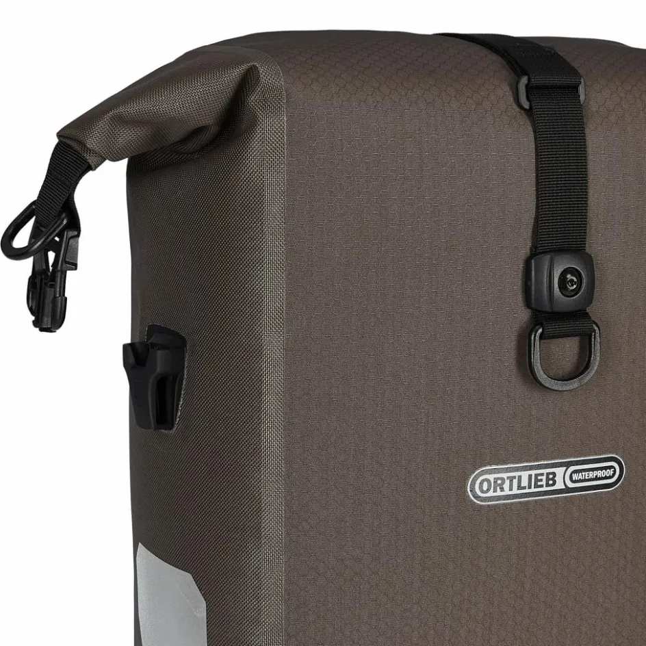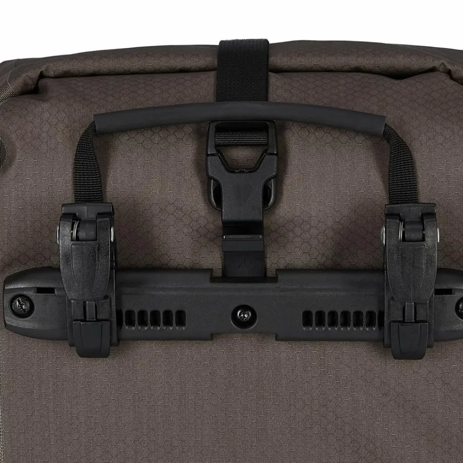 Das kompakte Gravel-Pack QL2.1 ist ideal geeignet für deinen Frontgepäckträger oder deinen Lowrider: die Tasche ist dank des verwendeten Materials sehr leicht, natürlich wasserdicht, und mit dem Quick-Lock 2.1 Aufhängungssystem ausgerüstet. Unten hat das System nicht nur einen, sondern gleich zwei Haken: Das hält sehr gut am Gepäckträger, auch wenn die Strecke mal holpriger wird. Ein weiterer Vorteil des Gewichts an der Gabel: Es kann hilfreich sein, etwas Druck aufs Vorderrad zu bekommen, wenn der Untergrund lose ist.