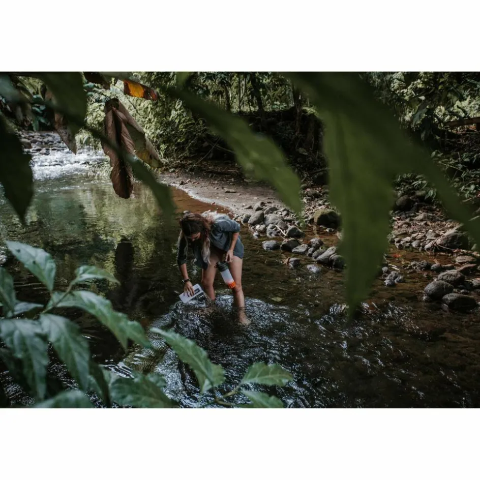 Die Geopress ist der schnellste portable Wasserfilter. Mit ihm zauberst du aus jedem Bachwasser sicheres Trinkwasser. Einfach mit dem Becher schöpfen, den Filtereinsatz einpressen und trinken.