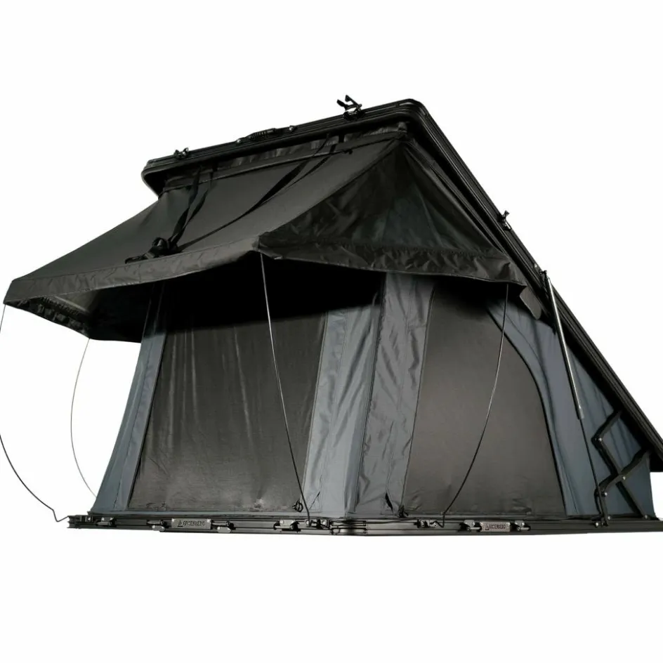 Die aerodynamische Aluminium-Hartschale mit nur 12 cm Höhe im geschlossenen Zustand reduziert den Luftwiderstand und spart Kraftstoff bei längeren Fahrten. Mit dem halbautomatischen öffnungsmechanismus lässt sich das Zelt mithilfe von Gasdruckfedern in Sekundenschnelle auf- und abbauen – auch alleine. Die großzügige Liegefläche mit Memory Foam Matratze, leichter Deckenerhöhung und belüftender 3D Airmesh Matte sorgt für erholsamen Schlaf. Fenster mit Insektenschutz ermöglichen gute Belüftung und Ausblick, während die LED-Beleuchtung mit USB-Anschluss Licht ins Zelt bringt.