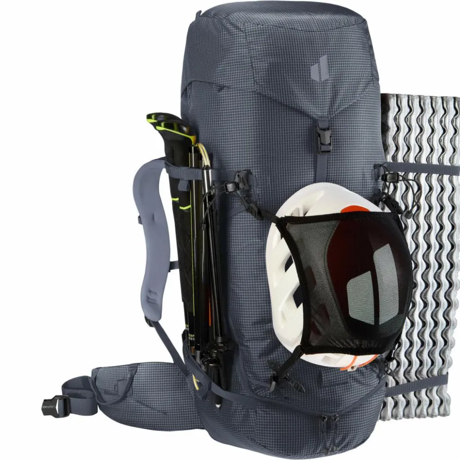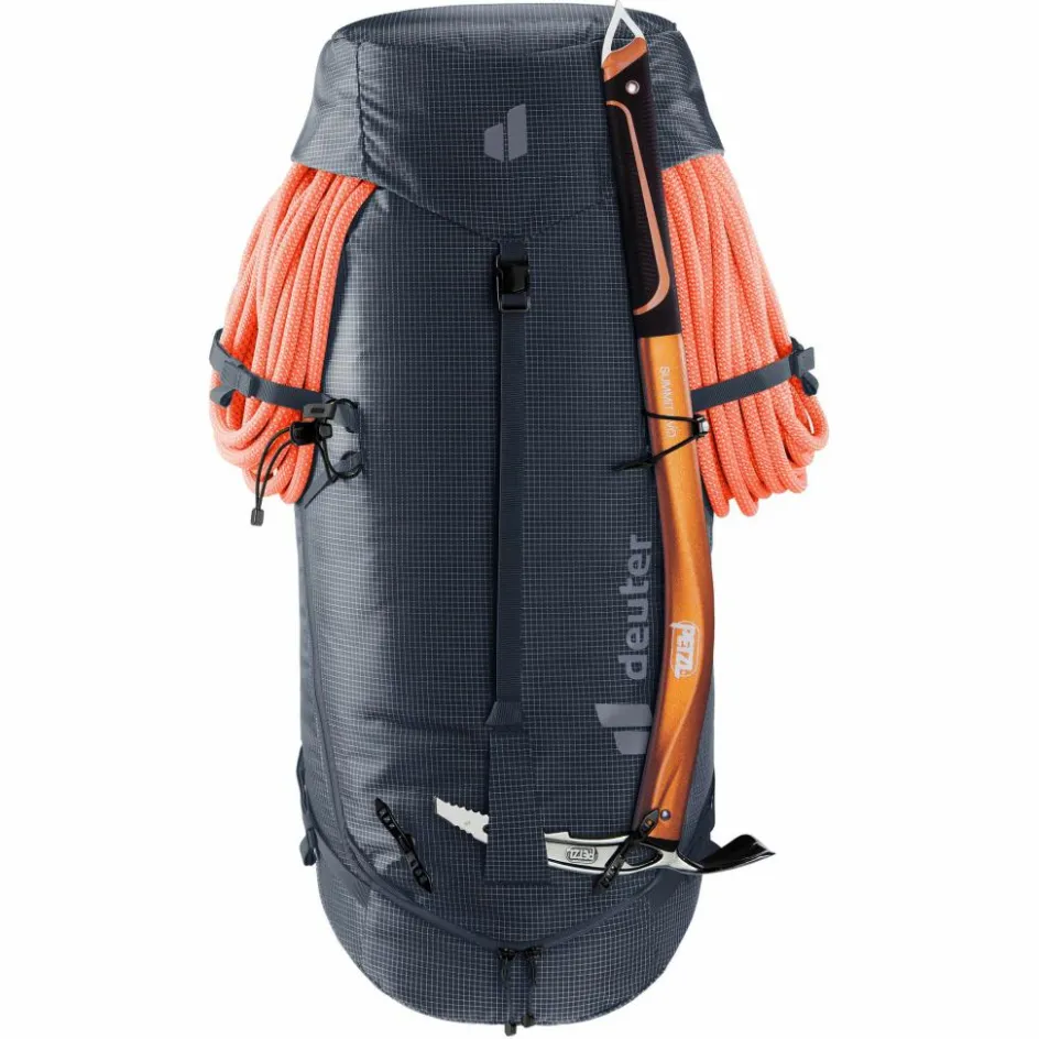 Dank abnehmbarer Hüftflossen und Deckelkonstruktion, material- und Befestigungsschlaufen, beidseitiger Pickelhalterung, seitlicher Ski-Fixierung, Seilfixierung, Helmnetz und einer Volumenerweiterung bietet dieser Rucksack alles, was Alpinist:innen benötigen. Ob mit Klettergurt in ausgesetzten Passagen, befestigten Skiern am steilen Gipfelaufschwung oder bei anderen alpinen Herausforderungen – der Einsatz des Rucksacks ist nahezu grenzenlos.