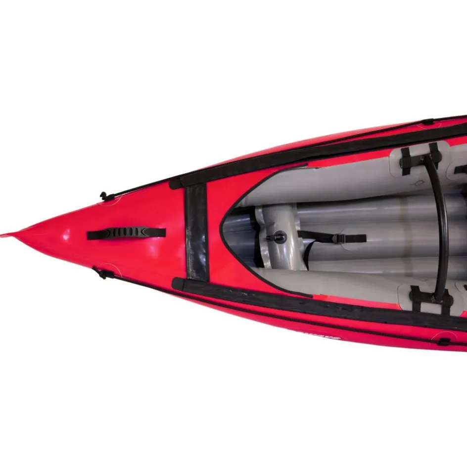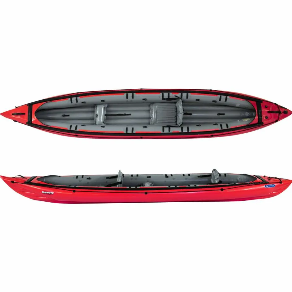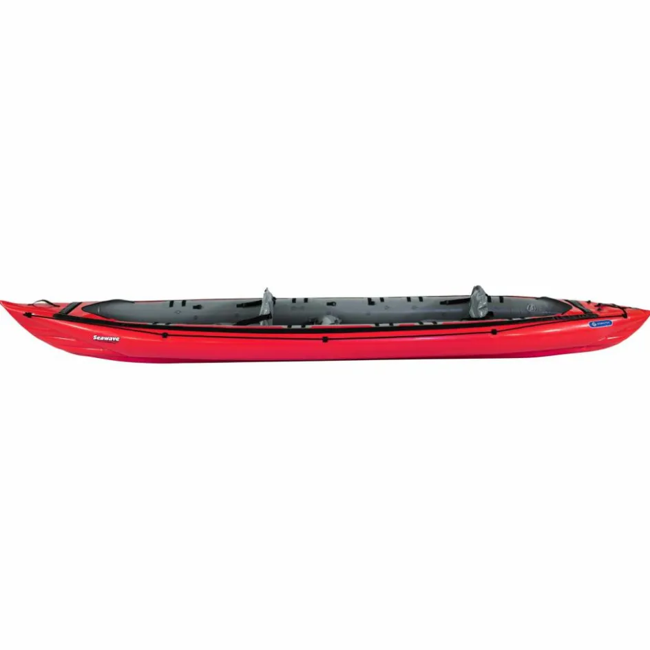 Durch seine schmale, lange Bauform, kombiniert mit einem stark konturierten Vordersteven, hat das Kajak einen sehr guten Geradeauslauf für ein Schlauchboot. Das Seawave ist mit Befestigungspunkten für eine Spritzdecke ausgestattet, die optional als Zubehör erhältlich ist.