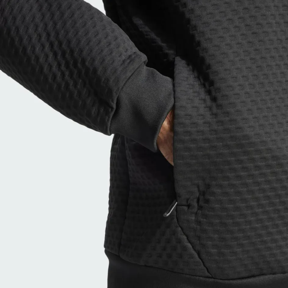 Der Sweater ist komplett aus recyceltem Polyester hergestellt und speichert deine Körperwärme effektiv. Dank des feuchtigkeitsleitenden und schnelltrocknenden Materials liegt der Pullover nach schweißtreibenden Etappen schnell wieder angenehm trocken auf der Haut. Die lockere Passform lässt dir volle Bewegungsfreiheit.
