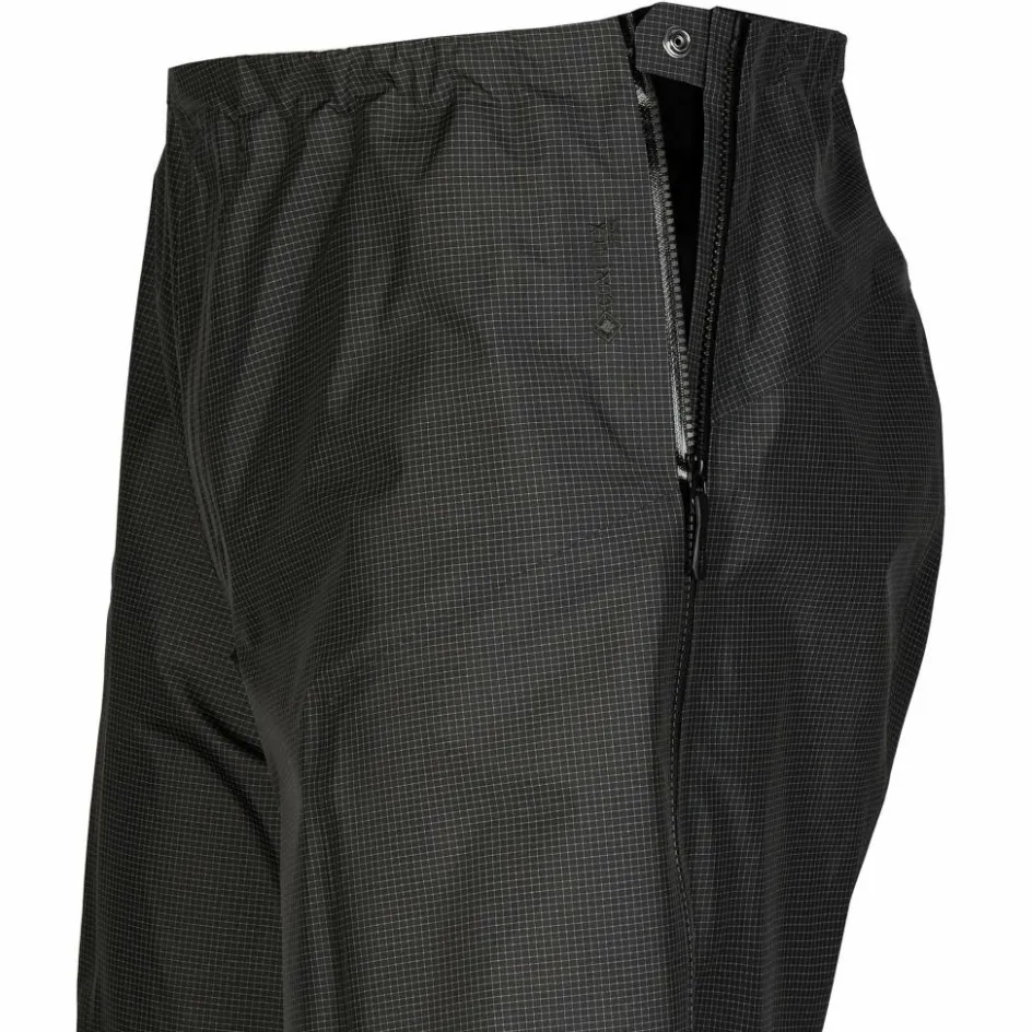 Um Gewicht zu sparen, ist die Ausstattung auf das Wesentliche reduziert. Der elastische Bund mit innen liegendem Schnürzug sitzt auch unter dem Klettergurt sehr bequem. Die Materialverstärkungen schützen vor Abnutzung und Verschleiß durch Steigeisen und Co. Durch ihr geringes Gewicht und Packmaß eignet sie sich optimal als Notfall-Regenhose für plötzliche Wetterumschwünge. Dank der durchgehenden Reißverschlüsse an den Seiten kannst du die Hose mit angezogenen Bergschuhen schnell überziehen.