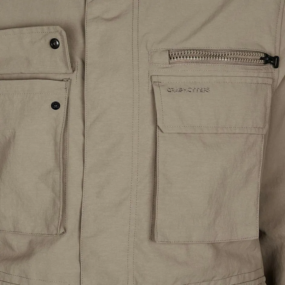Durch das feuchtigkeitsregulierende, teilweise recycelte Polyamid vermittelt die pflegeleichte Reisejacke ein angenehmes Trageklima. Das robuste Material ist mit der neuen Generation der NosiLife-Ausrüstung versehen. Diese basiert auf dem Öl des Zitroneneukalyptus Baums und mindert den Appetit von Mücken und Zecken. Zudem werden schlechte Gerüche gemildert. Beide Eigenschaften bleiben der Jacke bei richtiger Pflege den gesamten Lebenszyklus über erhalten. Gegen Sonnenstrahlen steht dir der UV-Schutz von 40+ zur Seite.