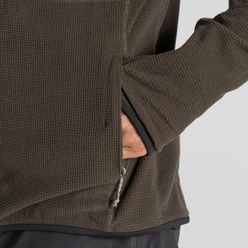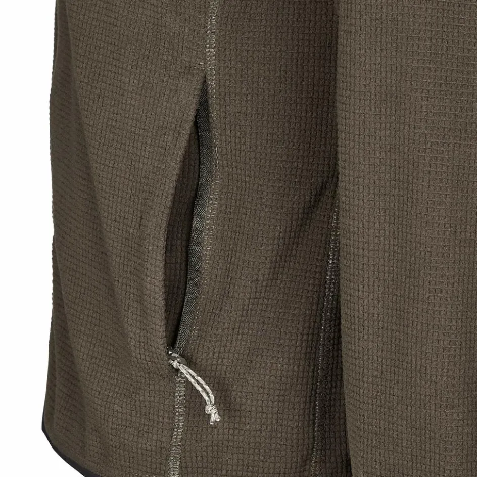 Die Fleecejacke trumpft mit recyceltem Polyester und einer Waffelstruktur auf. Somit ist sie nicht nur robust, sondern verfügt auch über ein gutes Feuchtigkeitsmanagement. Entstehender Schweiß wird flott weitergeleitet und das schnelltrocknende Material sorgt für ein komfortables Tragegefühl.