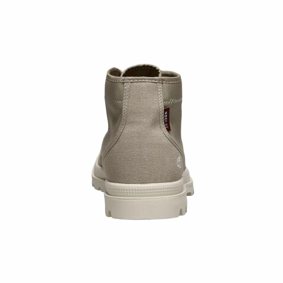 Das Obermaterial des Wüstenstiefels besteht aus robustem Canvas-Gestrick, also recyceltem Polyester und Baumwolle. Hier kommt außerdem die mückenabweisende NosiLife-Ausrüstung zum Einsatz. Dabei handelt es sich um einen Geruchsstoff auf Basis des Zitroneneukalyptus-Baums. Als Innenfutter kommt ein weiches Baumwollfutter zum Einsatz. Die verwendeten Schnürsenkel des Mono Mid 2 bestehen, wie auch Teile des Obermaterials ebenfalls aus recyceltem Material.