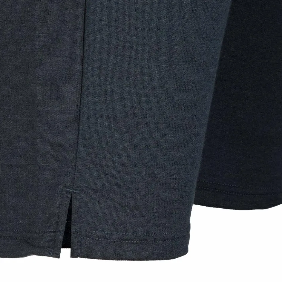 Die Innenseite ist aus reiner, extrafeiner Merinowolle (Materialstärke 210 g/m²) gefertigt, die besonders weich auf der Haut liegt. Zudem wirkt Wolle von Natur aus temperaturregulierend und geruchshemmend. Für die Außenseite wurde Merinowolle mit Polyamid kombiniert. Hierdurch wird die Strapazierfähigkeit erhöht und es kommt es nicht so schnell zu Abrieb. Zudem wurde die Außenseite mit Aquaduct behandelt. Aquaduct ist eine stark feuchtigkeitsleitende Ausrüstung, die eine ähnliche Wirkung wie ein absorbierender Docht hat. Dadurch kann entstehende Körperfeuchtigkeit noch schneller nach außen transportiert werden. Zurück bleibt ein angenehm trockenes Tragegefühl.