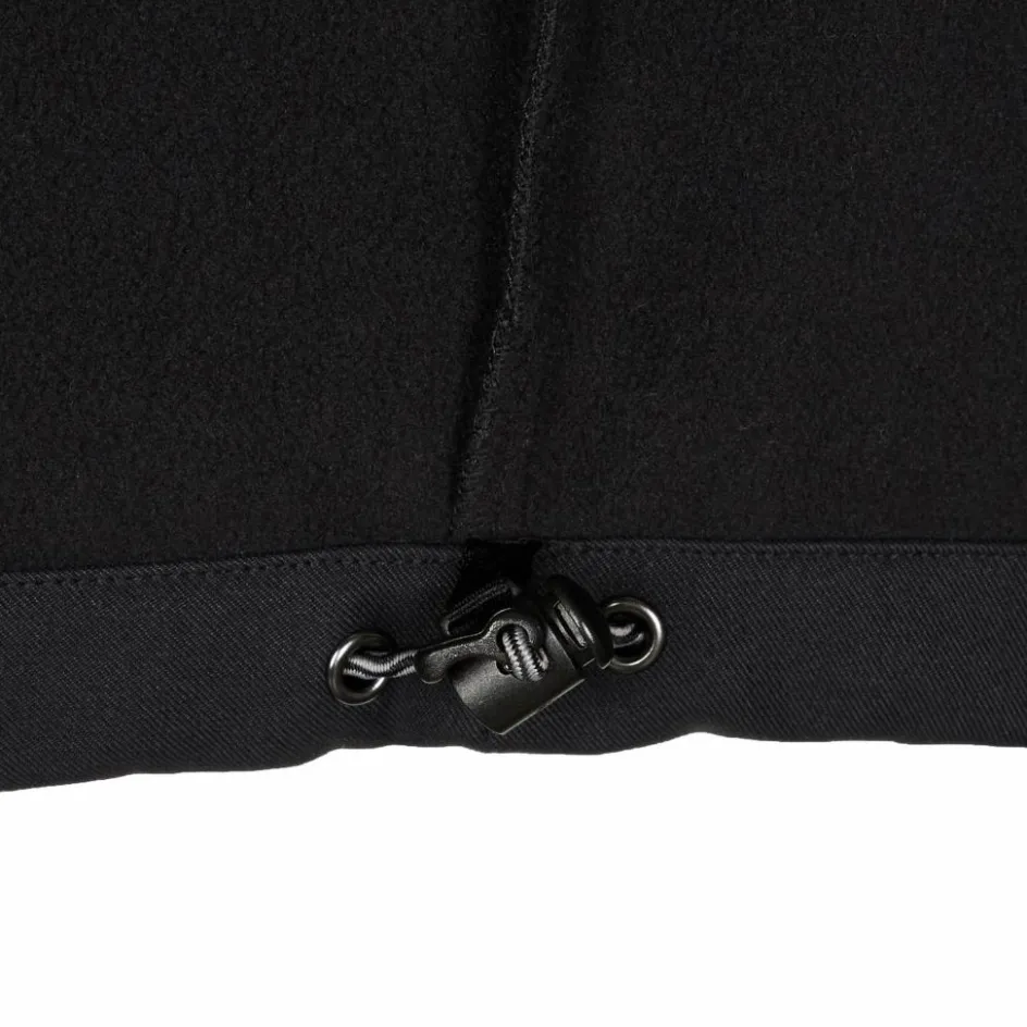 Der Stehkragen und die Volumenregulierung in der Kapuze bieten dir die Möglichkeit, dich auf Wind und Wetter einzustellen. Der unterlegte Front-RV ist dank des Kinnschutzes komfortabel und zudem noch wasserabweisend. Das weiche Fleecematerial im Innenfutter sorgt für ein angenehmes Tragegefühl. Die beiden abgedeckten RV-Taschen bieten Stauraum für Schlüssel und Geldbörse. Für das Handy ist eine Tasche im Inneren der Jacke vorgesehen.