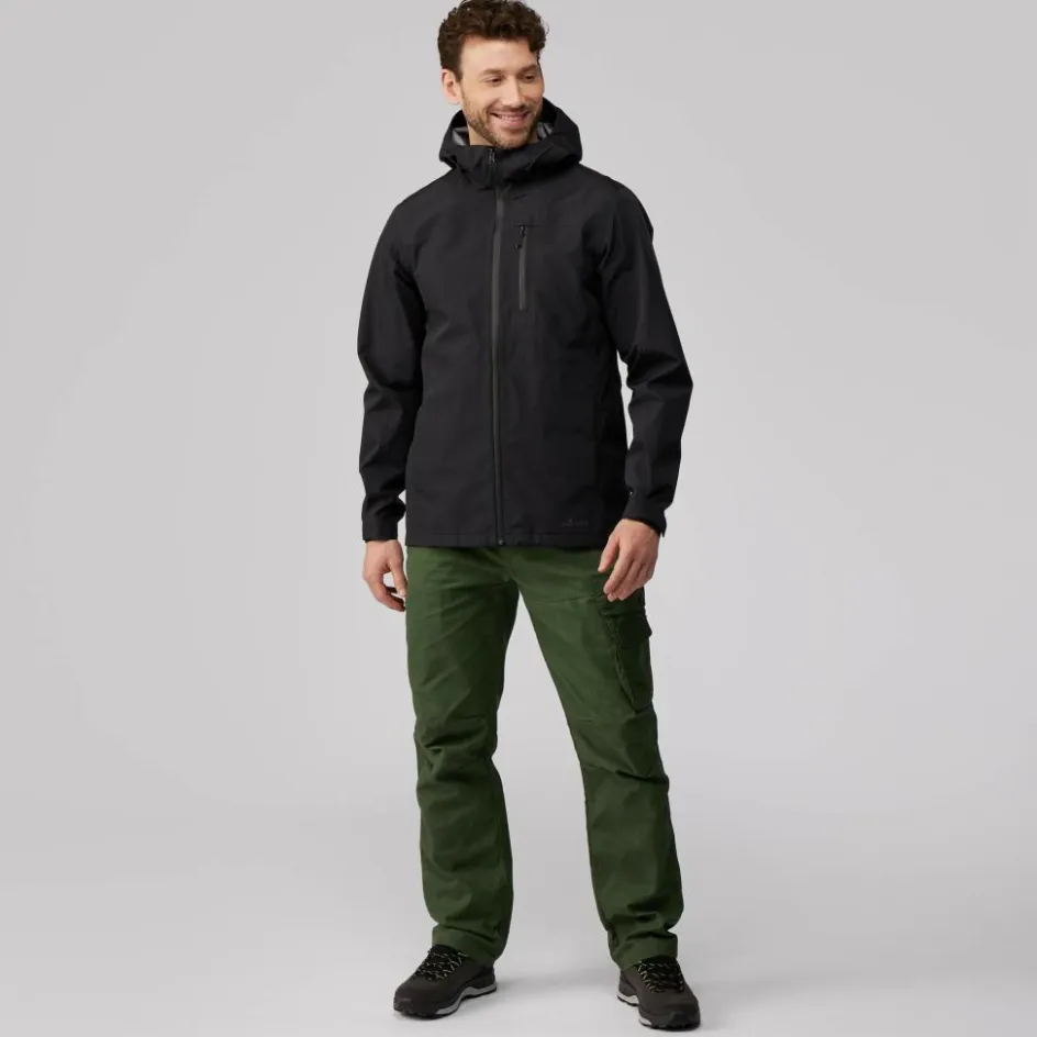 Die 3-lagige Jacke verfügt über einen festeren Griff sowie wind- und wasserdichte Eigenschaften. So hält sie die Elemente zuverlässig von dir fern, wenn du auf deinen Trekkingtouren einen verregneten Tag erwischt hast. Gleichzeitig bietet sie dir durch ihre Atmungsaktivität ein angenehmes Trageklima bei anspruchsvollen Wanderetappen. Eine PFC-freie DWR-Imprägnierung lässt Wasser bereits am Außenmaterial abperlen und optimiert hierdurch die atmungsaktiven Eigenschaften. Brauchst du eine Extra-Portion Abkühlung wird diese über die 2-Wege-RV-Unterarmbelüftung ermöglicht.