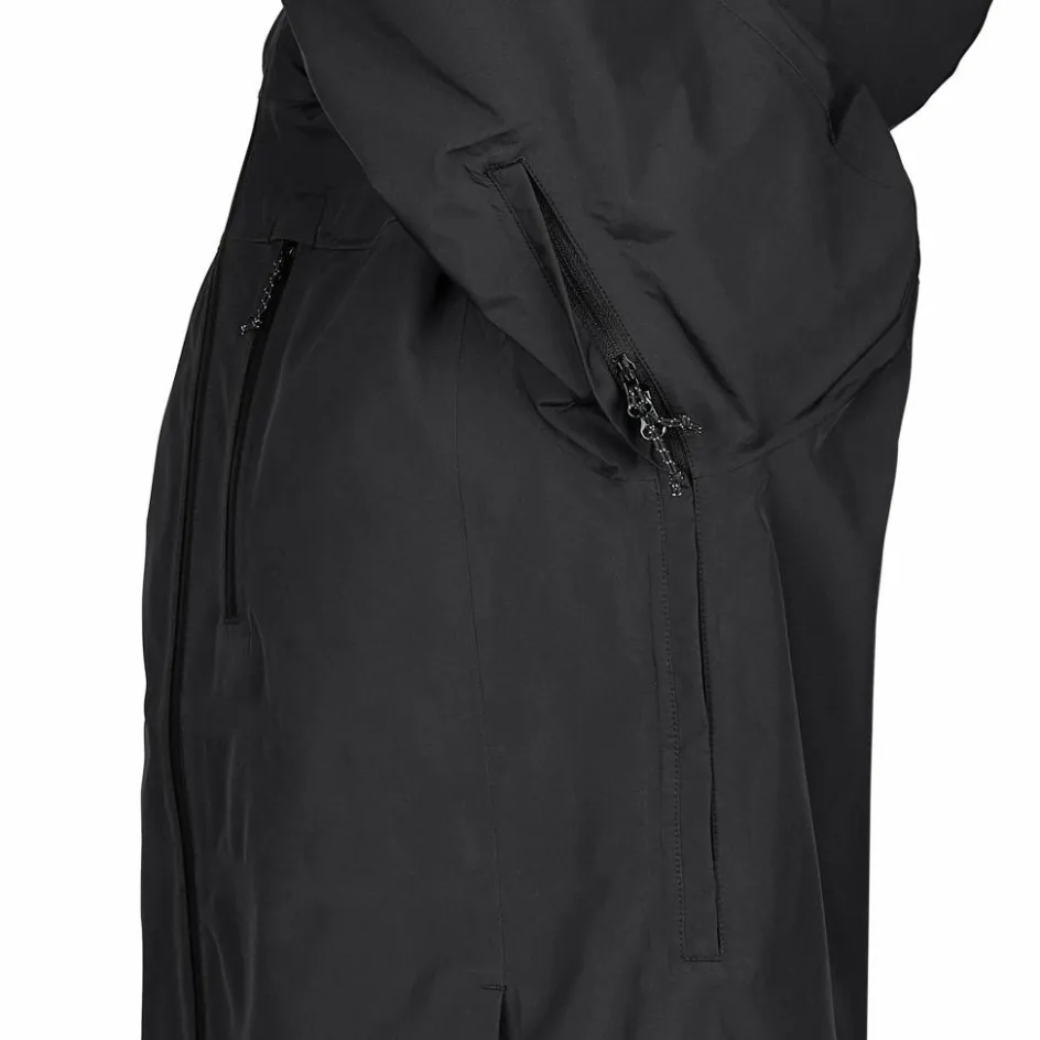 Durch die Sturmkapuze mit Volumen-Regulierung vorne und hinten bist du auch bei windigem Regenwetter optimal geschützt. Ein Schnürzug im Saum sowie die mit Klettverschluss regulierbaren Ärmelabschlüsse sorgen für guten Sitz und idealen Schutz bei Sturm und Nässe. Und mit ihren zwei abgedeckten RV-Seitentaschen sowie der wasserabweisenden RV-Brusttasche bietet dir die Aradena zudem trockene Unterbringungsmöglichkeiten für kleinere Ausrüstungsgegenstände.