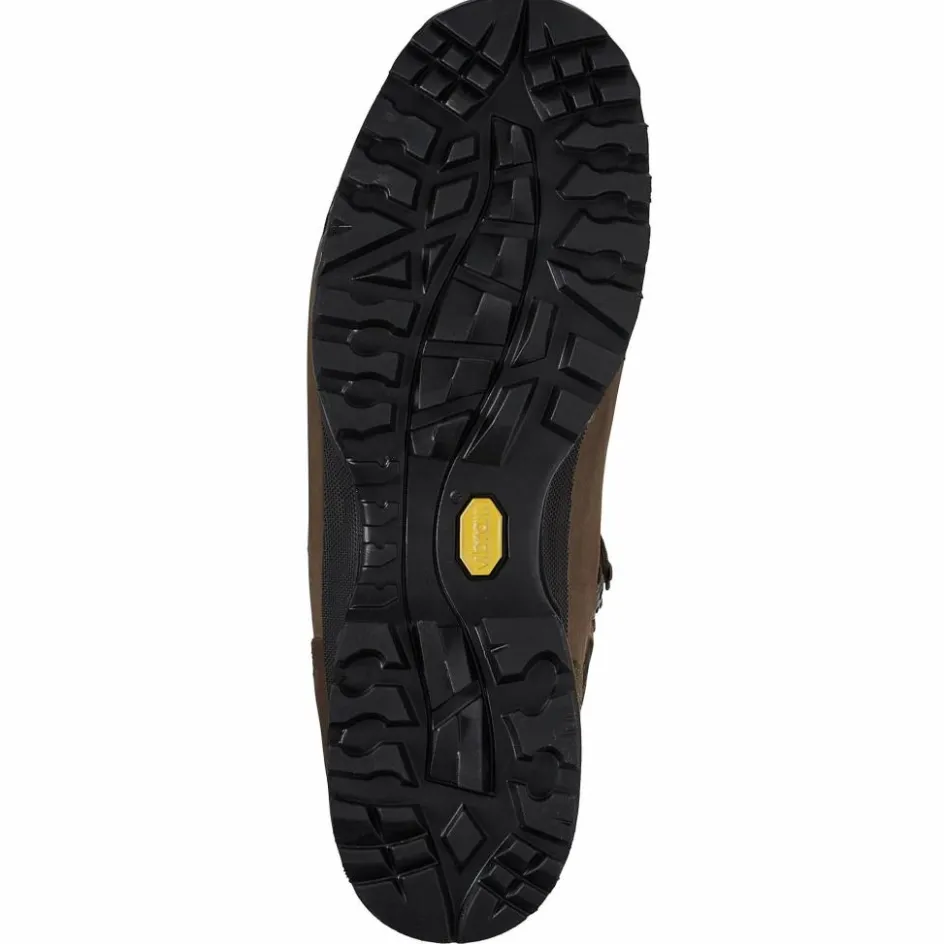 Eine Zwischensohle und ein Shock-Absorber im Fersenbereich dämpfen den Auftritt. Die feste Vibram-Laufsohle hat ein kräftiges Profil mit Brems- und Auftrittstollen. Diese mindern die Gefahr des Wegrutschens beim Auf- und Abstieg.