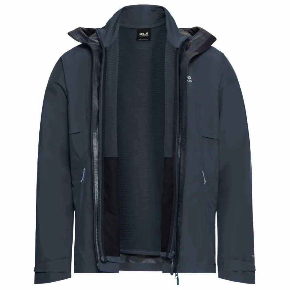 Dass du bei Regen trocken bleibst, dafür sorgt zum einen das wasserdichte, recycelte Material der Außenjacke. Zum anderen kannst du die Ärmelabschlüsse und den Saum so anpassen, dass sie körpernah sitzen und der Regen nicht ungewollt hineinfließt. Auch plötzlich aufkommenden Wind hält die Doppeljacke dir mit ihren winddichten Fähigkeiten vom Leib. Gleichzeitig ist sie atmungsaktiv, eine wichtige Eigenschaft, wenn du beim Berghochgehen ins Schwitzen gerätst.