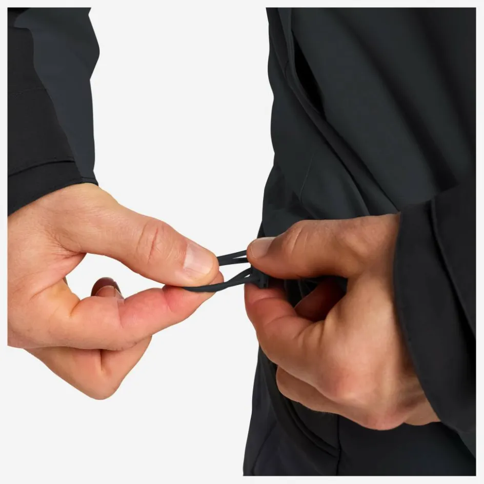 Die wetterfeste Außenjacke besticht durch recyceltes Hauptmaterial und hält dir dank wind- und wasserdichter Membran die Elemente vom Leib. Das atmungsaktive Gewebe sorgt auch bei schweißtreibenden Etappen für ein ausgeglichenes Trageklima. Eine zweifach regulierbare Kapuze schützt dich vor Regen. Für die richtige Einstellung sorgt ein Schnürzug am Saum und Klettverschlüsse an den Ärmelbündchen. Wichtige Utensilien bringst du in den beiden seitlichen Reißverschlusstaschen unter. Für deine Wertsache verbirgt sich eine RV–Napoleontasche unter der RV-Leiste.