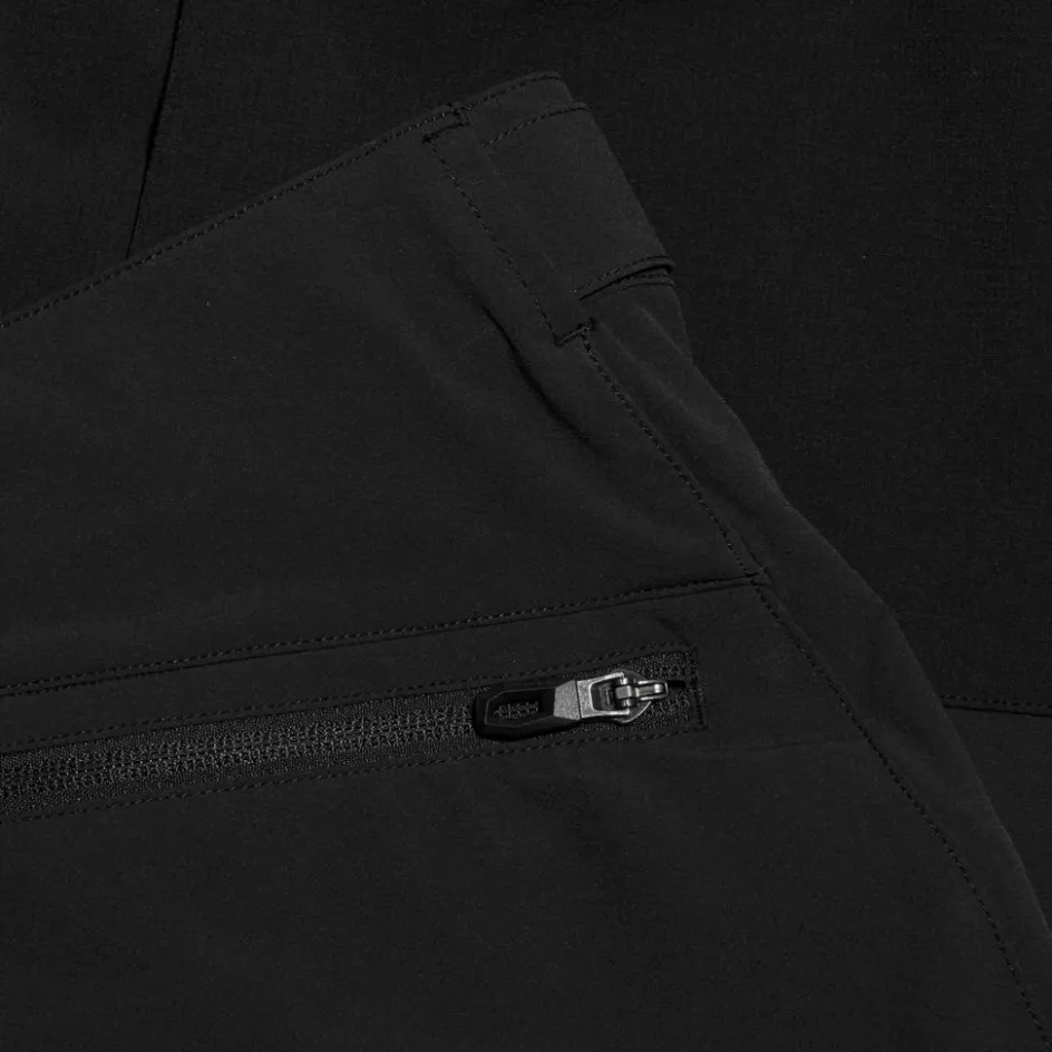 Sowohl das Hauptmaterial als auch die Einsätze sind stark elastisch. Hinzu kommt eine ergonomische Schnittführung mit vorgeformter Kniepartie. So macht die Softshellhose auch ausladende Steig- und Kletterbewegungen mühelos mit.