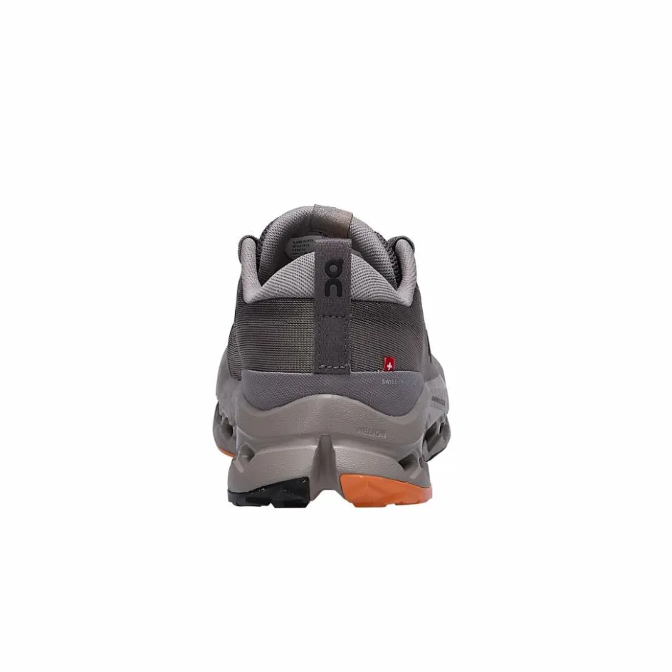 Auffallend ist beim Cloudsurfer Trail vor allem die Anordnung der Cloud-Dämpfungselemente. Im Zehen- und Ballenbereich sind sie horizontal angeordnet, im Mittelfußbereich kippen sie leicht nach hinten, wodurch zum einen der Vortrieb verbessert, vor allem aber die Abrollbewegung des Fußes auch bei hohem Tempo optimal unterstützt wird. Die Laufsohle ist mit griffigem Profil ausgestattet, dass up- und downhill für bestmöglichen Halt sorgt. Dank der moderaten Profiltiefe kannst du den Trailrunningschuh auch auf härteren Untergründen noch gut nutzen.