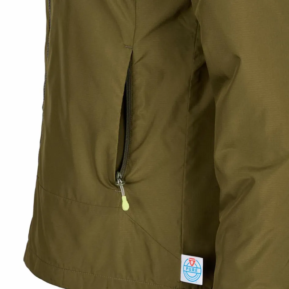 Ihr recyceltes Außenmaterial ist mit einer PFC-freien DWR-Imprägnierung behandelt und somit wasserabweisend. Wärme spendet dir eine leichte Kunstfaserisolation. Diese ist nicht nur pflegeleichter als Daune, sondern wärmt auch dann noch, wenn sie einmal feucht geworden ist.