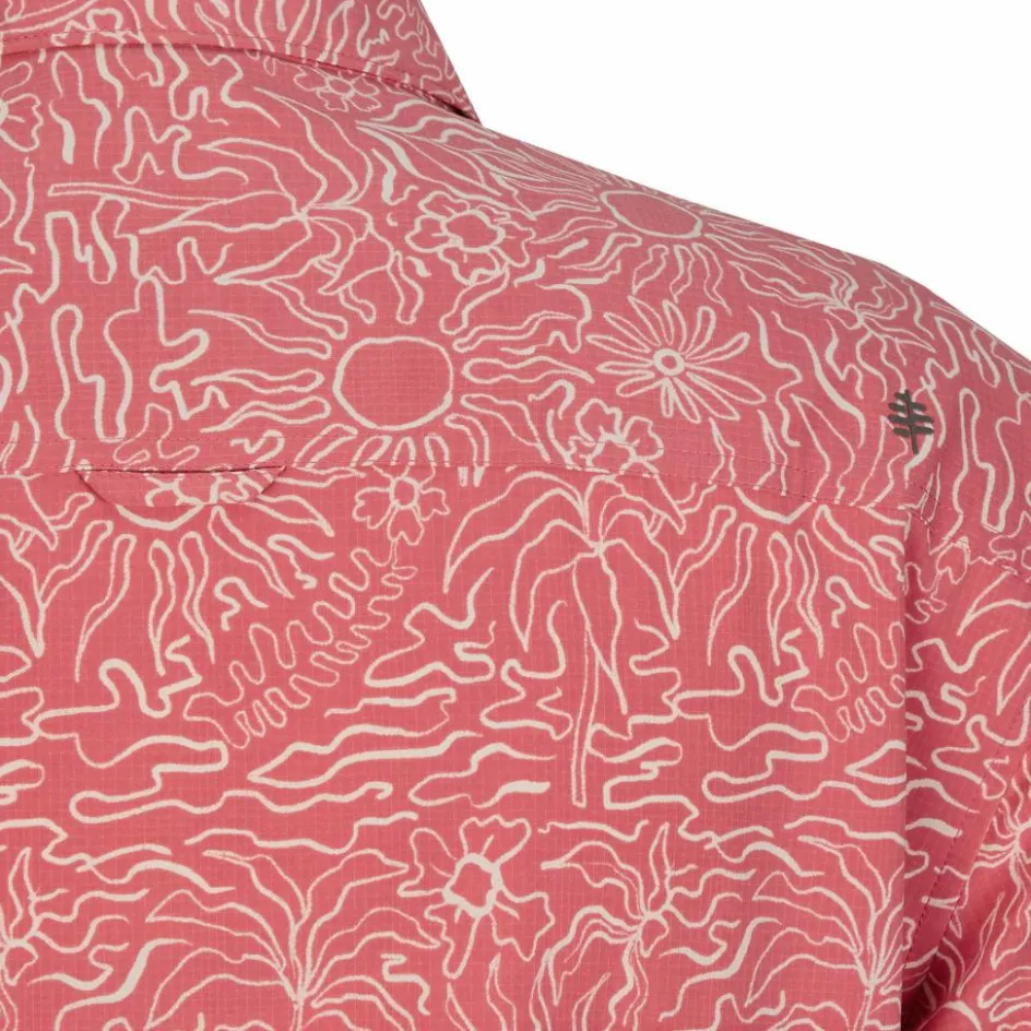 Die bequeme Passform und die elegante Optik machen das Salathé Sun Shirt zum bequemen Reisebegleiter. Für erhöhten Schutz vor praller Sonne sorgt der Kragen, den du hochstellen kannst und somit deinen Nacken vor Sonneneinstrahlung bewahrst. Die Knopfleiste, Brusttasche sowie der abgerundete Saum machen das Hemd auch in der Freizeit zum Hingucker.