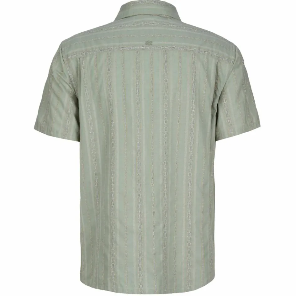 Das Kurzarm-Hemd ist aus einer Mischung aus Baumwolle und Polyester gefertigt. Die Baumwolle sorgt für einen weichen, natürlichen Griff, während die Kunstfaser den Feuchtigkeitstransport verbessert und das Belbari SS Shirt schneller trocknen lässt (im Vergleich zu einem Hemd aus reiner Baumwolle). Beide Materialien sind recycelt, so kann das Hemd auch in Sachen Nachhaltigkeit punkten.