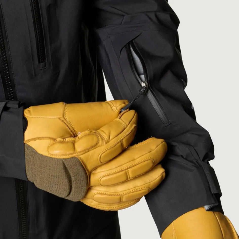 Darüber hinaus verfügt die Jacke über praktische Details, wie die Reißverschluss-Taschen, die auch mit einem Becken- oder Klettergurt gut zu erreichen sind. Die langen Ventilationsreißverschlüsse an den Seiten sind so tief angebracht, dass du die Taschen einer darunter liegenden Jacke bequem erreichen kannst.